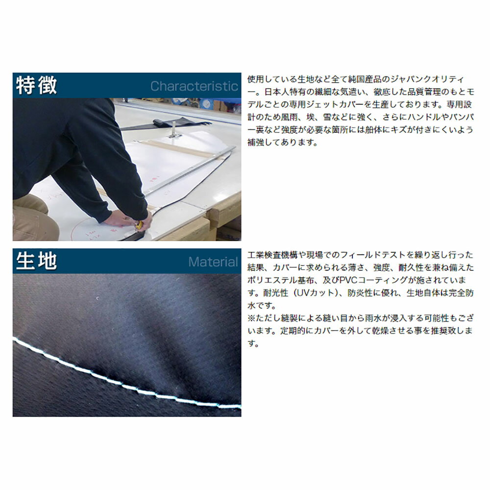 ■ポリエステル基布&PVCコーティング(防水、防炎、高耐久性) ■生地から縫製まで純国産「メイドインジャパン」クオリティー ●前のテープ:カバーを掛ける際に前をわかりやすくする為、色付きのテープにしてあります。 ●ミラー部分の裏アテ:ミラー部分には、すれ防止の不織布を裏アテにしています。 ●ハンドル部分:ハンドル部分も生地を二重にして補強してあります。 ●防水、防炎で外部からの衝撃にも強い「ポリエステル基布&PVCコーティング」を使用