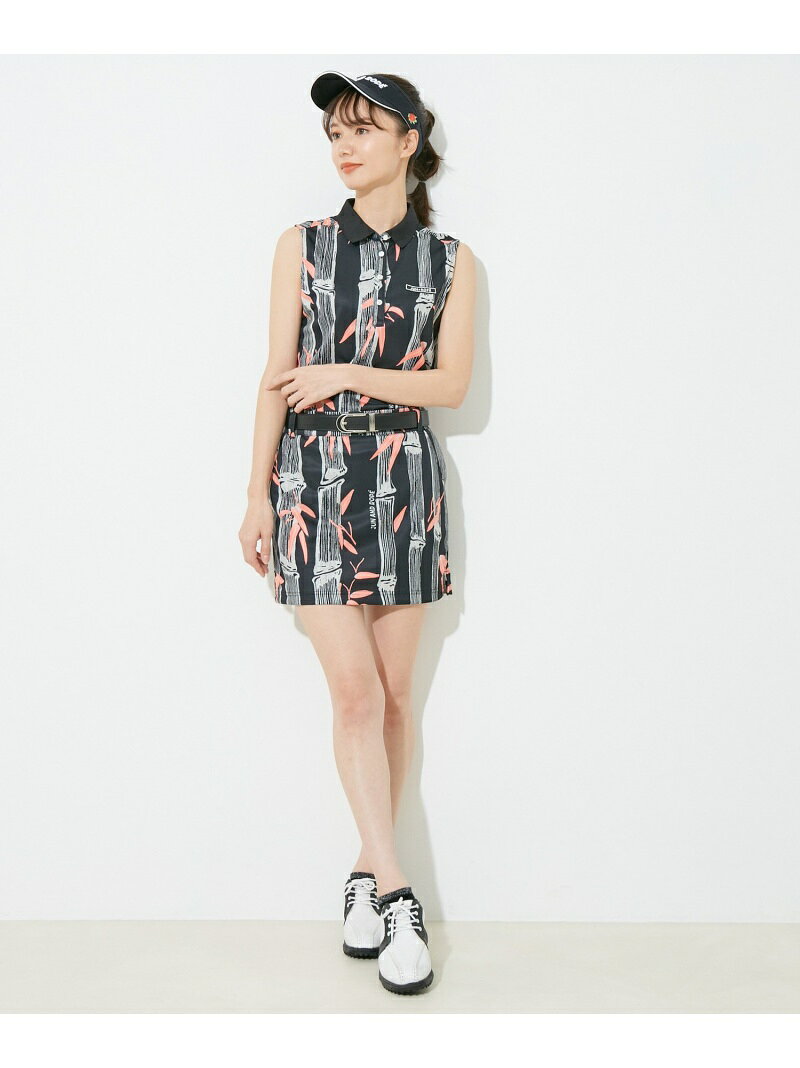 【SALE/70%OFF】【セットアップ対応】【UV】【吸水速乾】バンブー柄プリントノースリーブポロ JUN&ROPE' ジュンアンドロペ トップス ポロシャツ ブラック ブルー【RBA_E】【送料無料】[Rakuten Fashion]