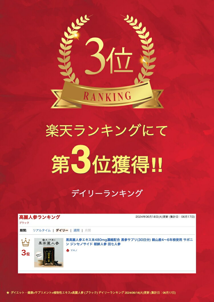 黒高麗人参エキス末480mg濃縮配合 黒参サプリ(30日分) 錦山産4〜6年根使用 韓国産 高麗人参 6年根 黒高麗人参 朝鮮人参 朝鮮人参サプリメント 高麗人参エキス ジンセノサイド サポニン ペプチド ビタミン ミネラル 活力 健康ミネラル 疲労 カプセル 父の日ギフト