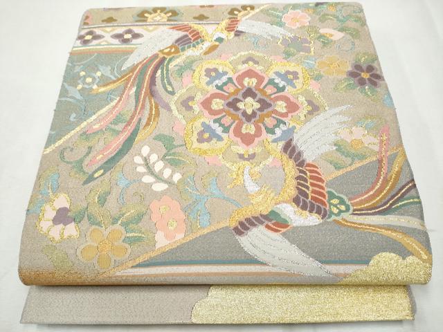 花々に短冊模様織出し名古屋帯【中古】【着】【名古屋帯】