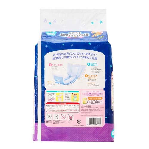 お店TOP>ピジョン オムツとれっぴ〜朝までぐっすりさらさらパッド (24枚入)【ピジョン オムツとれっぴ〜朝までぐっすりさらさらパッドの商品詳細】●「夜も布パンツをはかせてあげたい」「おねしょをした時の洗濯物を減らしたい」「紙オムツよりも経済的におねしょ対策がしたい」こんな気持ちをサポートします。●布パンツにセットするだけ。お気に入りの布パンツを使っておねしょ対策ができます。おしっこをしたらパッドを交換するだけなので、紙オムツを使うよりも経済的です。●朝までぐっすりハイパー吸収体。ハイパー吸収体が一晩中のおしっこをしっかり吸収するから、パッドの表面もお肌もさらさら快適に保ちます。不快感で目が覚めることなく、ぐっすり眠れます。●強力ズレ防止テープ。強力ズレ防止テープは前後2点止め。幅広タイプだから布パンツにピッタリついてズレません。●股ぴったりカット。布パンツの中にすっきりおさまるサイズで、ぴったりフィットして着用感がよく、一晩中快適に過ごせます。●2重のギャザー。2重のギャザーがからだにしっかりフィットし、からだとのすき間をつくらず横モレをストップさせます。●おしりホールド。おしりを大きく包み、前後のモレの不安を解消。薄型パッドなのでモコモコせず、見た目もすっきりです。【使用方法】(1)パッドの剥離紙をはがし、お手持ちの布パンツにパッドを貼り付けます。パッドの向きに前後はありません。(2)パッドを貼り付けた布パンツごとお子さまにはかせます。【ピジョン オムツとれっぴ〜朝までぐっすりさらさらパッドの原材料】・表面材・・・ポリプロピレン不織布・吸収材・・・高分子吸水材、線状パルプ、吸収紙・防水材・・・ポリエチレンフィルム・止着材・・・ホットメルト接着剤・伸縮材・・・ポリウレタン・結合材・・・ホットメルト接着剤・外装材・・・ポリエチレン【注意事項】※ご使用前に必ずお読みください。・装着の仕方を誤ると漏れることがあります。しっかり広げてご使用ください。・正しく装着しても、ズレたり、隙間があいたりする場合は、ゴムがしっかりしてズレにくい布製トレーニングパンツとの併用をおすすめします。・お肌に合わない時はご使用を中止し、医師にご相談ください。・お子様の手の届かない所に保管し、ご使用後はすぐに処分してください。※おしっこ3〜4回分(1回80mL)の吸収量がありますが、濡れたら必ず交換してください。【ブランド】とれっぴ〜【発売元、製造元、輸入元又は販売元】ピジョン※パッケージデザインの異なる企画品が届く場合がございます。予めご了承ください。リニューアルに伴い、パッケージ・内容等予告なく変更する場合がございます。予めご了承ください。(オムツとれっぴー おむつとれっぴー)ピジョン103-8480 東京都中央区日本橋久松町4番4号0120-741-887広告文責:楽天グループ株式会社電話:050-5306-1825