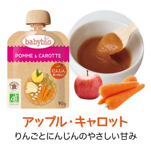 【18日10:00~21日9:59 エントリーで最大7倍】ベビービオ 有機ベビースムージー アップル・キャロット(90g*14個入)【babybio(ベビービオ)】