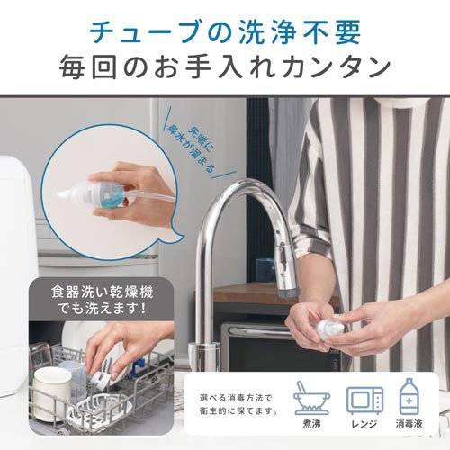 お店TOP>ヘルスケア・衛生用品>鼻吸い器・鼻みず取り器>ソットトッテ 電動鼻すい器 (1セット)商品区分:管理医療機器 (管理)(303AKBZX00025000)【ソットトッテ 電動鼻すい器の商品詳細】●赤ちゃんへのやさしさ・快適性を第一に考えた電動鼻すい器。●静音ポンプを採用し、医療機器スペックの吸引力で小さな音を実現。●鼻づまりで苦しい赤ちゃんが快適な時間を過ごすことができるように。●お手入れカンタンで衛生的に保管できる静音にこだわった電動鼻すい器。(販売名)ソットトッテ 電動鼻すい器【効能 効果】<使用目的又は効果>鼻腔内に溜まった鼻汁の吸引に用いる。【セット詳細】本体、鼻水タンク、先端ノズル、専用ACアダプター、シリコーンンチューブ、取扱説明書、添付文書【規格概要】部品名:原材料鼻水タンク:ポリプロピレン、先端ノズル:シリコーンゴム、シリコーンチューブ:シリコーンゴム、ドレンタンク:ポリプロピレン、本体:ABSなど部品名:耐熱温度鼻水タンク:120度、先端ノズル:120度、シリコーンチューブ:120度、ドレンタンク:120度【注意事項】<使用上の注意>1.使用環境および使用条件・浴室などの湿気の多い所、水のかかりやすい所での使用は危険ですので絶対にしないでください。・他の治療器との同時使用はしないでください。・使用-5度〜+35度/75%RH以下。2.使用前の注意事項・使用する際は専用ACアダプターを正しく、かつ確実に接続してください。・使用前にスイッチが正しく作動するかを確認してください。・しばらく使用しなかったときは、機器が正常かつ安全に動作することを確認してください。・吸引前には先端ノズルが鼻水タンクに取り付けられているかを確認してください。3.使用中の注意事項・同一箇所への使用は5秒以内としてください。・先端ノズルを無理に鼻の奥まで押し込まないでください。・お子さまが痛がる場合は使用を中止し、医師にご相談ください。・吸引中は、先端ノズルが鼻の内側の皮膚に触れないようにしてください。4.使用後および保管の注意事項・使用後は鼻水タンクをシリコーンチューブから外し、鼻水タンクの洗浄を行ってください。必要に応じて消毒を行ってください。・専用ACアダプターを取り外す際は、コード部分を持つのではなくプラグ部分を持って引き抜いてください。<取り扱い上の注意>・付属の専用ACアダプターは本器の使用以外には用いないでください。<保守・点検に係る事項>・本体をお手入れする時にベンジンやシンナー、アルコールなどは使用しないでください。・薬液消毒する際は各消毒液の使用方法に従ってください。また、消毒後は必ず水洗いし陰干しで十分に乾燥させてください。・別売品、並びに寿命の終わった機器および付属品の廃棄に関しては、地域の定める条例に従って廃棄してください。<警告>[事故や身体への著しい障害を招く恐れがあります。]・鼻腔の鼻汁の吸引以外の目的で、本品を使用しないでください。・使用の際は急激な吸引を避ける為、鼻腔に対し先端ノズルを少し離れた位置から徐々に近づけるように吸引してください。・長時間の鼻腔への接触、吸引はしないでください。<禁忌・禁止>[事故や体調不良をおこす恐れがあります。]・他の医療機器との併用はしないでください。・次の人は、使用前に医師に相談してください。(1)体温38度以上(有熱期)の人(例 急性炎症症状(けん(倦)怠感、悪寒、血圧変動など)の強い時期、衰弱している場合)(2)安静を必要とする人。(3)吸引する部位に異常(感染症、傷など)のある人。・使用によって鼻腔の炎症、出血、かゆみなどの症状があらわれた場合は、使用を中止し医師に相談してください。・使用後および他の人に使用する際は必ず一度洗浄・消毒を行ってください。[事故やけがのおそれがあります。]・身体及び機器に異常を感じたときには、使用を直ちに中止してください。・お子さまだけで使用させないでください。・先端ノズルを鼻腔の奥まで挿入し過ぎないでください。・吸引後は本体の電源を切ってください。・本体底面の排気口を塞がないでください。[発火や、関電・けがの原因になります。]・専用ACアダプターに他の製品を接続して使用しないでください。・機器は分解・修理・改造をしないでください。・機器が故障した場合は、勝手に修理などせず、販売店又は製造販売元に連絡してください。・本体を稼働させたまま放置しないでください。(本体が加熱するおそれがあります)<保管及び有効期限等>・不安定な場所・お子様の手の届く場所には保管しないでください。・高温多湿な場所での使用・放置・保管はしないでください。・火気の近くや車内などの高温になる場所、直射日光の当たる場所での使用・保管しないでください。(変形・変色のおそれがあります)・保管-20度〜+60度、75%RH以下。【原産国】日本【発売元、製造元、輸入元又は販売元】丹平製薬リニューアルに伴い、パッケージ・内容等予告なく変更する場合がございます。予めご