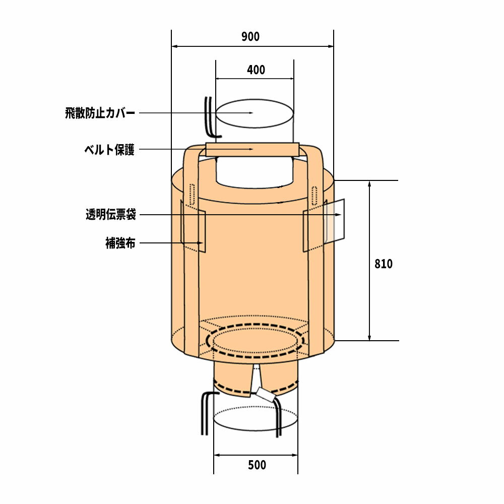 フレコンバック 053S 丸型 500L 10枚 / 100枚 900φx810H 上下半開 排出口あり フレコンバッグ バージン材 コンテナバッグ フレキシブルコンテナ 【食品衛生法適合】 大型土のう 土のう袋 土嚢 【送料無料】
