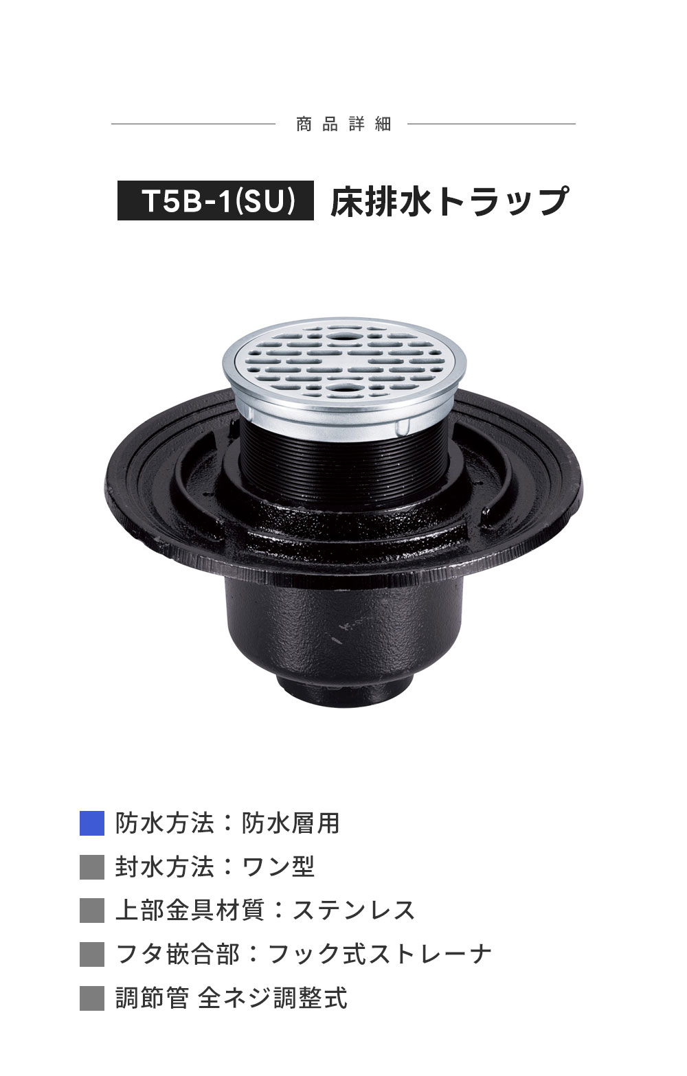床排水トラップ T5B-1(SU) T5B-1(SU)PW 防水層用 ステンレス製 フック式ストレーナ 全ネジ調整式 椀 鋳鉄 樹脂 ワン型 封水 楽天 中部コーポレーション【返品交換不可】