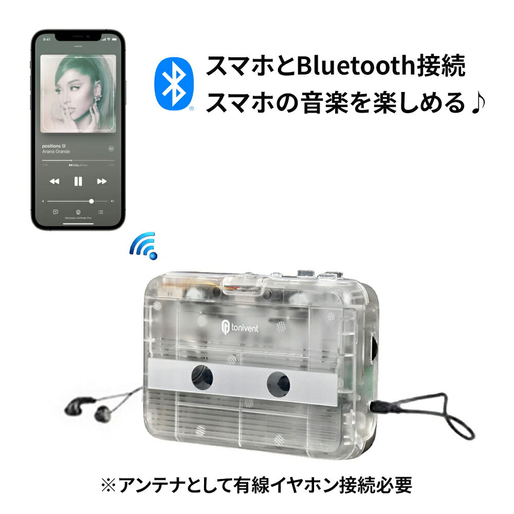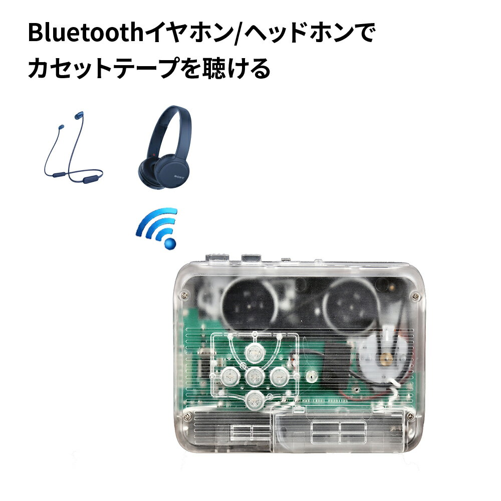 Bluetoothカセットプレーヤー Bluetoothでヘッドフォンやスピーカーやスマホと接続 FMラジオ受信対応 ラジカセ USB/電池2Way給電 おしゃれな透明ボディ スケルトンデザイン