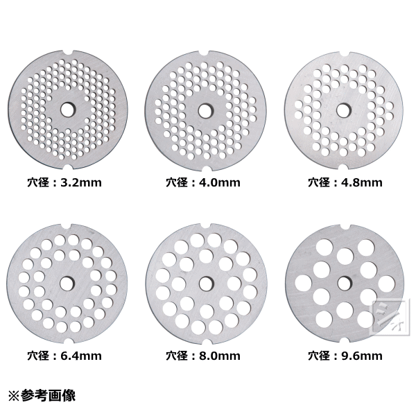 商 品 説 明 材質 ステンレス鋼 (SUS420J2) サイズ 穴径:3.2mm・4mm・4.8mm・6.4mm・8mm・9.6mm・12.8mm・16mm 特徴 ●刃物用ステンレス鋼、錆びにくい。●ボニーのプレートとナイフは特殊な金属に特別な熱処理を施し、精密研磨仕上げしたものです。鋭い切れ味と抜群の耐久性を持っており、また種々の材質と様々な形状のものがありますので、家庭用から業務用そして食肉加工用大型機械にまで幅広くご利用いただいております。 注意 ●製品の仕様およびデザインは改良のため、予告なく変更することがあります。●製品の色は実際の色とは多少異なります。 製造 日本 メーカー ボニー 関連ワード: プレート 替え刃 替刃 部品 キッチンミンサー用 ミンサー用 ひき肉 挽肉 挽き肉 ミンチ BK220 BK205N Bonny 【関 連 商 品】 プレート 穴径1.2mm プレート 穴径1.6mm プレート 穴径1.9mm プレート 穴径2.4mm プレート 穴径3.2~16mm 右ハードナイフ 電動ミンサー BK-220 まめミンサー BK-205N
