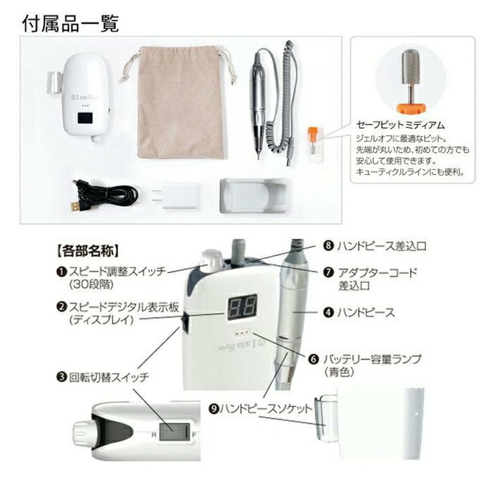 商品情報 商品名 PREGEL プリジェル レクシア スピン N ネイルマシーン ピンク/ホワイト 商品説明 レクシアスピンが仕様変更して新登場!軽量コンパクトボディで、充電式ポータブルタイプだから持ち運びも楽々♪フル充電で最大8時間使用可能のパワフルバッテリー!スピード調整スイッチ30段階表示、最大速度35,000回転/分!正回店・逆回転の切替も可能、安全装置も装備しておりプロも納得のスペックです。コロンとした可愛いフォルムも魅力的? 商品詳細 消費電力:10W回転数:35,000回転/分電池容量:4,000mA本体サイズ:W145×H75×30mm使用時間:6〜8時間(空転状態)ケーブルで本体に直接充電:約2.5時間満充電電源アダプター定格出力:5V 2A付属品:専用電源アダプター、充電ケーブル、ハンドピーススタンド、収納ポーチ、ビット1本付き(セーフビットミディアム)保証期間:6か月 関連商品 ・プリジェル 販売元 株式会社プリアンファ 区分 美容家電、サロン専売品 > ネイル > ネイルマシーン 広告文責 ビューティシモ株式会社 プロ用ヘア&コスメShopNetsbee