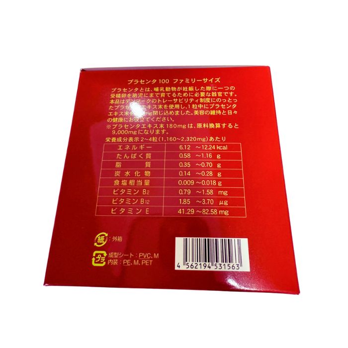 商品情報商品情報栄養機能食品(ビタミンB12、ビタミンE)高濃度のプラセンタで美容と健康をサポート。こんな方にお勧め・美容が気になる方・シャキッとした生活を心がけたい方・毎朝気持ちよくスタートしたい方「プラセンタ100」は、トレーサビリティー(生産地証明制度)による厳しい安全基準をクリアしたデンマーク産の健康な豚由来のプラセンタから不純物や水分を取り除き、濃縮したものを原料として使用しています。プラセンタ100の1粒に、100%高濃度のプラセンタエキス末を180mg配合。五大栄養素はもちろん、各種アミノ酸、活性ペプチド、核酸など栄養素が自然に含まれた美容サポートサプリです。性別、年齢を問わず輝く毎日を送りたい方におすすめです。【全成分】プラセンタエキス末(豚由来)、加工油脂、還元難消化性デキストリン、胡麻油、EPA含有精製魚油、亜麻仁油、DHA含有精製魚油、グレープシードオイル、オリーブ油、米胚芽油、エゴマ油、ゼラチン、グリセリン、グリセリン脂肪酸エステル、ビタミンE、植物レシチン、ビタミンB2、ビタミンB1、ビタミンB12(原材料の一部に大豆を含む)【保存方法】高温多湿、直射日光を避け、涼しいところに保存してください。【注意事項】※原材料名をご確認の上、食物アレルギーのある方は、お召し上がりにならないで下さい。体質に合わない場合は、ご使用を中止して下さい※乳幼児の手の届かないところに保管して下さい※一部天然由来原料を使用しているため色調に多少の違いが生じる場合がございますが、品質に問題ありません※食生活は、主食、主菜、副菜を基本に、食事のバランスを※本品は、多量摂取により疾病が治癒したり、より健康が増進するものではありません※1日の摂取目安量を守って下さい。本品は、特定保健用食品とは異なり、消費者庁長官による個別審査を受けたものではありません。【その他】■栄養機能食品(ビタミンB2、ビタミンB12、ビタミンE)■ビタミンB2は、皮膚や粘膜の健康維持を助ける栄養素です【商品区分】栄養機能食品/日本製【製造/販売者】銀座ステファニー化粧品株式会社JAN/ISBNコード4562194531563プラセンタ 100 PLACENTA 100 ファミリーサイズ 300粒 ステファニー 賞味期限2026.4末以降 「リピート率が答えです。」選ばれ続けるプラセンタ100、理由があります。 5
