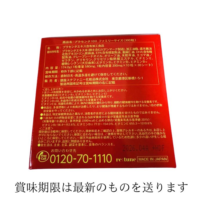 プラセンタ 100 PLACENTA 100 ファミリーサイズ 300粒 ステファニー 賞味期限2026.4末以降