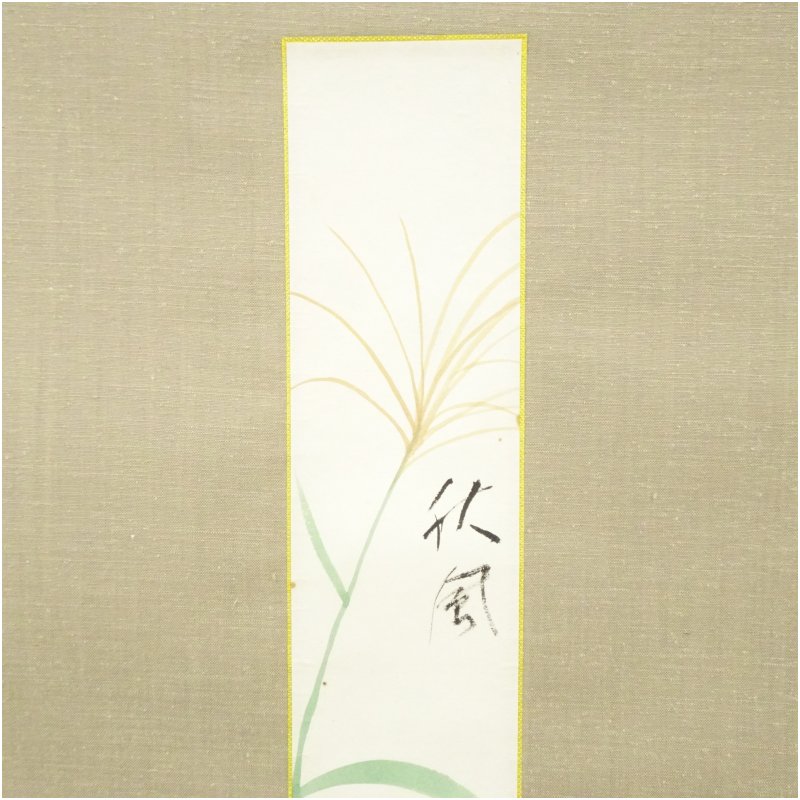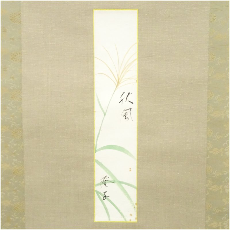 【中古】【書画】武者小路家 千澄子筆 「秋風」すすき 肉筆短冊掛軸(保護箱) 掛け軸 床の間 書 おしゃれ 絵画 表具 芸術 茶道 年中掛け インテリア 茶掛 掛物 和室 8月 夏