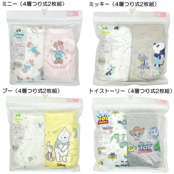 【80cmのみ】トレーニングパンツ 4層 つり式 2枚組 ディズニートレパン ミニー ミッキー プー トイストーリー キャラクター 80 90 95 100 【1点までメール便可】