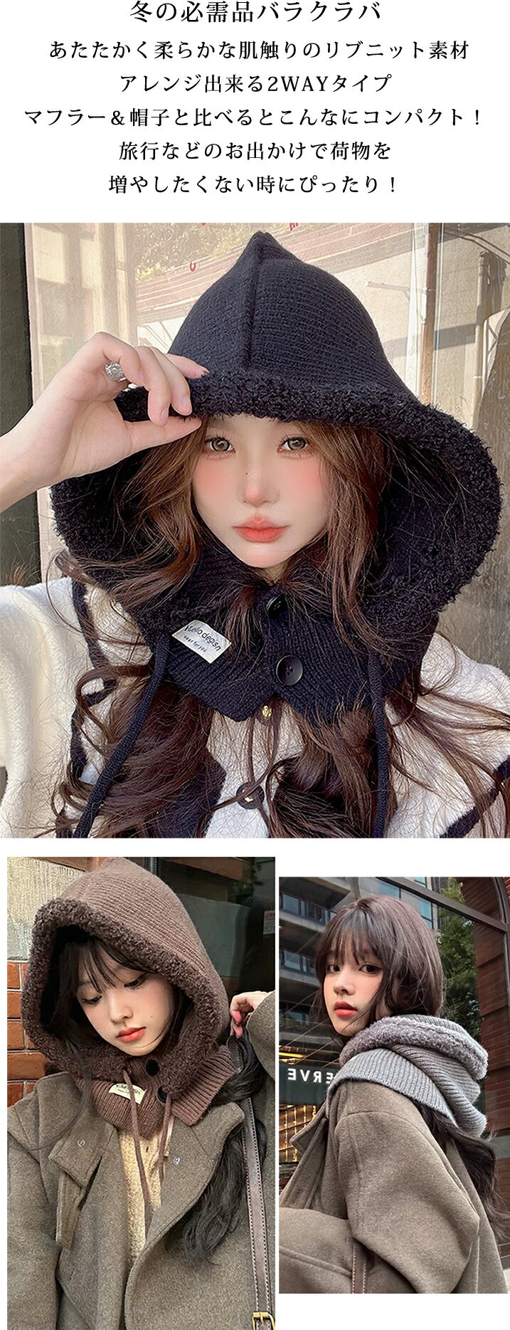 ブラックフライデー超目玉■ 1B14 2WAYリブニットバラクラバフードウォーマー もこもこ帽子 リボン レディース 帽子ボアハット帽子 可愛い 秋冬 帽子 レディース フリーサイズ【送料無料】
