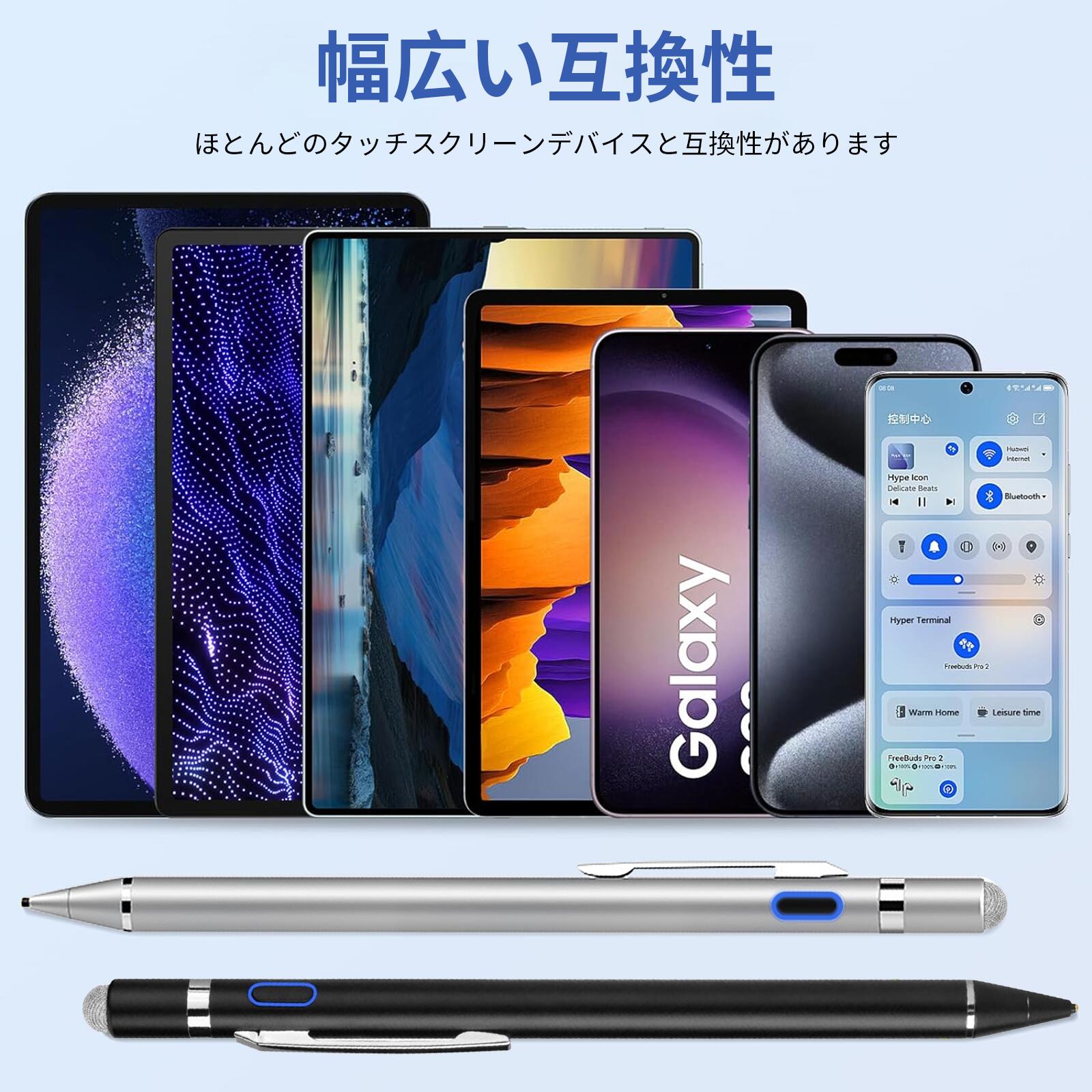 【2025年新品発売】タッチペン 極細 スタイラスペン タブレット スマートフォン iPad iPhnoe Android対応 高感度 ツムツム 金属製 軽量 USB充電式 細/太両側使る 銅製1.45mm 2in1 導電繊維ペン先 送料無料