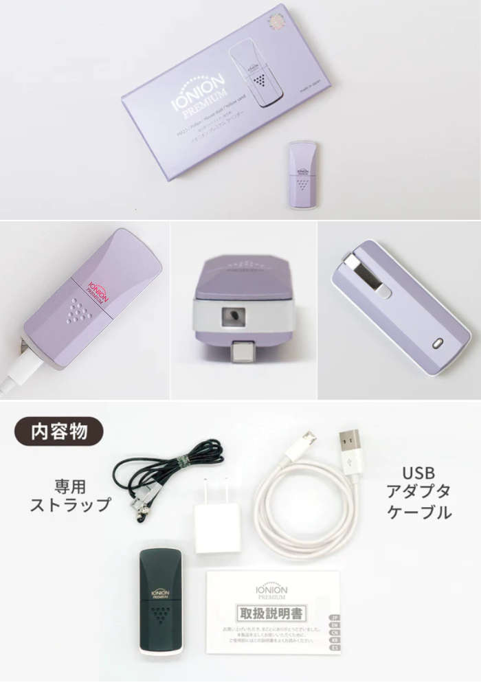 超小型マイナスイオン発生機 イオニオン PREMIUM ラベンダー マイナスイオン 花粉症 タバコの煙 副流煙 首掛け ペンダントタイプ イオンパワー USB充電 ポータブル 持ち運び PM2.5 予防 対策 おしゃれ 日本製 プレゼント ギフト