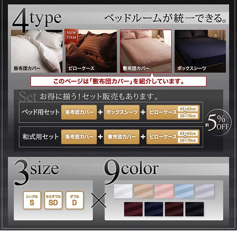 カバー 敷き布団 ホテル サテン織 コットン オールシーズン 綿混 ポリエステル サラサラ 白 黒 赤 ピンク ホワイト ブラック ホテルスタイル ストライプ サテン 敷き布団カバー単品 シングル