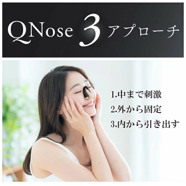 商品名 NIPLUX ニップラックス 鼻美顔器 QNose キュノーズ 商品情報 ■品 名 QNose(キュノーズ) ■品 番 NP-QN25BK ■定格電源 DC 5V 2A ■消費電力 約0.3W(充電時) ■セット内容 本体×1 収納ポーチ×1 ■USB充電コード×1 ■取扱説明書兼保証書×1 ■本体寸法 約52×37×18mm ■化粧箱寸法 約100×115×30mm ■重 量 本体:約13g ■電池容量 50mAh ■使用環境 環境温度:-10〜45℃ ■相対湿度≦95%RH ■製品素材 ABS、PU、TPU、シリコーン ■保証期間 購入日より1年間 ■商品説明 メーカー保証期間 1年 ※完全防水ではありません。滴るような水分量を含んだフェイスパックは使用しないでください。 これ1台でトータル美鼻ケア 本気で鼻を仕上げる。目指すのは、「私だけの忘れ鼻」 ◆挟むだけじゃない、新ノーズクリップ誕生 独自EMSテクノロジーで挟むだけじゃない、新ノーズクリップ誕生。 鼻に安心 専用低周波 EMS DBNテクノロジー搭載 ◆EMSカーボンパッド採用 ジェル不要、シート交換不要、ハンズフリー 高品質のカーボンパッドを採用することで高い通電率を誇り、繊細で複雑なEMSが鼻の筋肉にしっかり届きます。 パッドには複数の突起があるので滑り落ちることを防ぎ、鼻にしっかりフィットします。 ◆キュッと引き締める※ EMSの刺激で鼻の筋肉トレーニング&ケア 筋肉をうまく使えないと重たい印象の顔になる可能性が・・・ 鼻まわりの筋肉が硬くなったり、筋力不足になると 鼻だけではなく口もとやお顔全体の印象にも関わってしまいます。 ◆固定して形つける 鼻のために設計されたクリップでしっかり挟んで形つける 鼻は鼻骨と複数の軟骨で構成されています。 これらの軟骨が広がってしまうと鼻の見た目にも大きく影響します。 左右から挟み込んで、圧を加えながら固定することでスマートな鼻の印象に ◆理想の素肌を引き出す光LED ざらつきが気になる鼻周り。 素肌引き締め、理想へ導く 青色LED 数ある光LEDの中から青色を厳選。 ざらつきや見た目が気になる鼻周りを引き締めてケアすることでお肌を健やかな状態へ。 ◆安心の防水規格IPX4 IPX4の防水設計でワンランク上の美鼻ケア フェイスパックと合わせて使うのもオススメ。 つい浮いてしまいがちな鼻周りもしっかり抑えて肌に密着させます。 ※完全防水ではありません。滴るような水分量を含んだフェイスパックは使用しないでください。 ◆自動オフタイマー 約10分で自動的に電源がオフに。 使いすぎによる鼻への負担を軽減。 ◆超軽量 小型でとても軽いので鼻に装着しやすい。 継続的なケアが可能に。 ◆USB充電式 TypeC端子充電対応。 繰り返し何度も使えます。 安全に関するご注意 ●次のような医用電子機器を使用している方は使用しないでください。 ・ペースメーカーなど体内植込式医用電子機器 ・人工心肺など生命維持用医用電子機器 ・心電計などの装着型医用電子機器 ●他の低周波/高周波医療機器と同時に使用しないでください。 ●医師からマッサージを禁じられている方は使用しないでください。 ●乳幼児や子供の手の届く場所に保管したり、使用させたりしないでください。 ●ペットには使用しないでください。 ●次のような方は医師と相談の上、ご使用ください。 ・悪性腫瘍のある方 ・心臓疾患、障害及びその疑いのある方 ・糖尿病などによる高度な末しょう循環障害による知覚障害のある方 ・疾患により発熱している方 ・骨、捻挫、肉離れなど急性[とう(疼)痛性]疾患の方 ・血圧に異常のある方、血液疾患や血栓のある方及びその疑いのある方 ・医師から運動を禁じられている方 ・安静を必要とする方 ・妊娠中の方、出産直後の方 ・薬を服用中の方、通院中の方 ・かつて治療や手術を受けたところ(美容医療施術を含む)、または疾患部へ使用する方 ・自ら意思表示ができない方や操作が行えない方 ・導電性の金属などを埋め込んである部位に使用する方 ・歯の治療中の方、歯に詰め物がある方、インプラントを装着している方 ・神経障害、皮膚知覚障害のある方 ・接触性皮膚炎など皮膚に既往症のある方 ・アレルギー体質、敏感肌の方 ●使用中、身体に異常を感じたときは直ちに使用を中止し、医師に相談してください。 ●次のような場合や部位には使用しないでください。 ・皮膚炎、やけど、傷、湿疹、腫れもの、化膿性疾患などお肌に異常がある場合およびその部位 ・かゆみやほてりのある部位 ・膨らんだほくろ、ウイルス性のイボのある部位 ・鼻以外の部位 ・当日脱毛処理をした部位 ・刺青(タトゥー)を入れている部位 ・飲酒後や疲労の激しい場合 ・運転中 ●取扱説明書に記載されている用途以外には使用しないでください。 ●必ずメイクを落とし、しっかり保湿した状態で使用してください。 ●メガネや金属類、イヤリングなどのアクセサリー類を外してから使用してください。 ●使用中は金属や他の電気製品に接触させないでください。 ●本体を肌に取り付ける前、あるいは肌から取り外す前に必ず電源をオフにしてください。 ●本体
