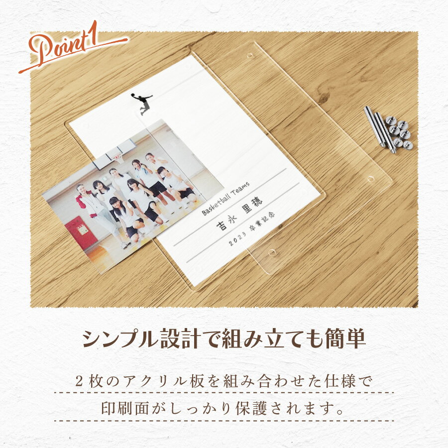 商品について 製品説明 スポーツ大会の記念品、卒業記念におすすめのアクリル製フォトフレームです。 チーム名または学校名、選手名や大会名、日付などが入れられるので、自分たちのオリジナルが作れます。 ご家族、おじいちゃん、おばあちゃんへのプレゼント、部活動の記念にも喜ばれます! ご注意 ・アクリル板に元からついている細かい傷の様なものがある場合がありますがご了承ください。 ・本商品はUVプリントのお名入れ商品です。 ・レーザー彫刻による名入れ商品ではございません。 ・印刷部分を強くこすったり鋭利なものをあてないでください。 ・けばの立たないソフトな布で丁寧に磨くか、ぬるま湯で手洗いしてください。 ざらざらした傷つきやすいものやガラスクリーナーとの接触は避けてください。 配送について こちらの商品はメール便送料が本体代金に含まれております。 ※宅配便をご希望のお客様は配達日時を注文日より4日後以降にご指定頂くことが可能です。 ※沖縄・離島、一部地域は、通常の配送時間に加え4−5日ほどお時間をいただく場合がございます。 ※沖縄・離島、一部地域は、通常の配送料金に追加料金税込み 1500円となります。 ※配送の状況によりましてはご指定通りにお届けできない場合がございます。 名入れについて ※お写真のUV印刷オプションをご選択いただいた場合はアクリルに直接印刷するため写真の入れ替えはできません。 ※名入れの際に本体を開封いたします。 ※名入れ後の返品交換は出来ません。 ※商品画像はイメージとなります。 ※パッケージ等は予告なしに変更となる場合ございます。
