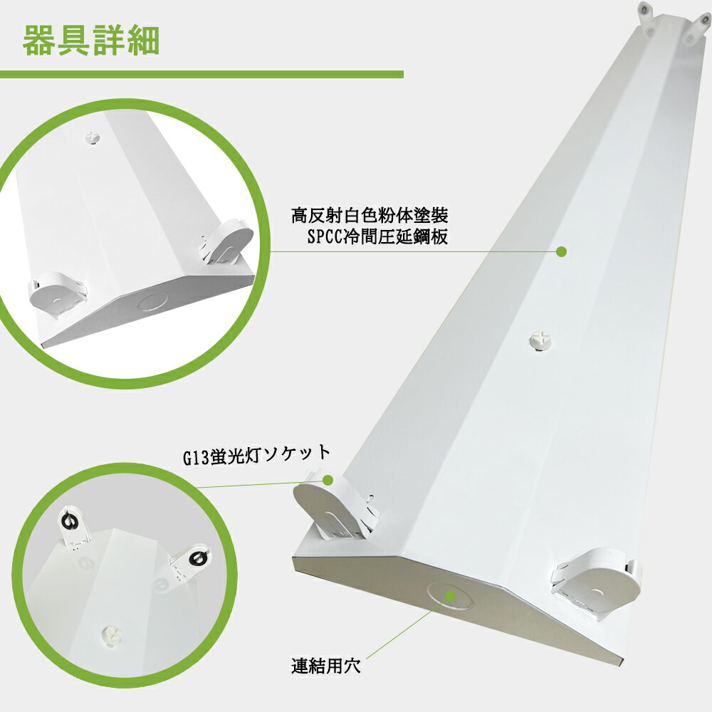 【商品内容】 ■ LED蛍光灯照明器具逆富士型2灯式40W型 ■ 器具本体はSPCC冷間圧延鋼板(高反射白色粉体塗装付)を採用するので、耐久性と安全性が高いです。 ■ 端子台付き、屋内配線をそのまま接続できます。 ■ 電源内蔵タイプの直管LED専用照明器具、両側給電仕様。 ■ PSE認証取得済(電気用品安全法)。 ■ 日本仕様で開発した商品なので、長い寿命を保証するので、安心! 【器具仕様】 サイズ:123.5×15×4cm 重さ:1.9kg 材質:SPCC冷間圧延鋼板 反射板塗装:高反射白色塗装 定格電圧:AC100V 50/60Hz 定格消費電力:30WX2まで ソケット:G13(蛍光灯タイプ) 【LED蛍光灯仕様】 商品名:LED直管蛍光灯40W型 材質:PC+アルミ サイズ:φ28mm×L1198mm カバー:乳白カバー 口金:G13(蛍光灯タイプ) 消費電力:18W 電圧:AC85V〜250V 周波数:50/60Hz 全光束:2200lm 色温度:昼光色6000K / 昼白色5000K / 電球色3000K ビーム角:180度 点灯方式:両側直結対応グロー式対応 ※発光角度180度、裏面はアルミ放熱板です。 【注意】 ■ LED専用照明器具です。 ■ 安定器はございませんので従来の蛍光灯には使用できません。 ■ AC配線を取り扱う場合は、有資格者による配線工事を行うようお願いします。 ■ LED蛍光灯付きの場合は1台器具2本蛍光灯付き、2台器具4本蛍光灯付き、3台器具6本蛍光灯付き、これによって類推します。 ■ 照明器具本体3年保証付き、何か問題や初期不良などがございましたら、早めに連絡してください。迅速、誠実な対応を心掛けて対応させて頂きますので宜しくお願い致します。 (※注文番号は保証番号になります)