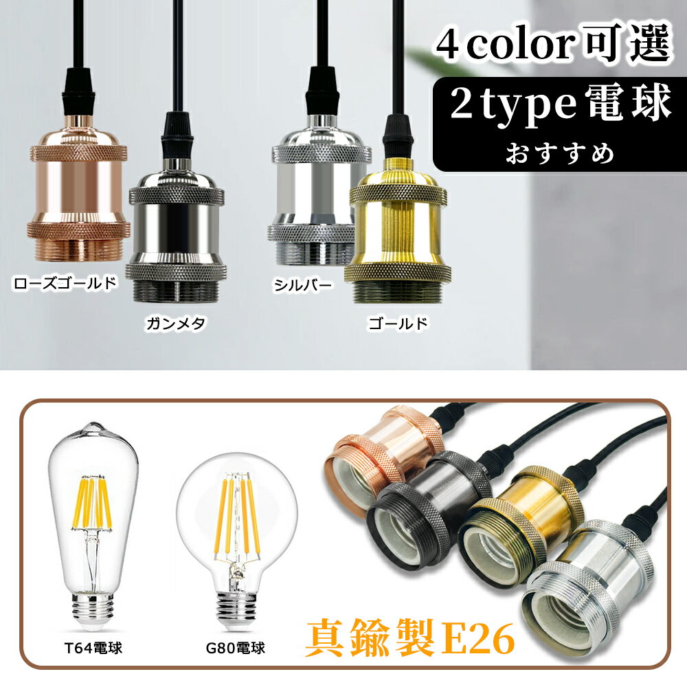 【楽天1位】ペンダントライト おしゃれ 吊り下げソケット 電球ソケット 真鍮製 E26 レトロ照明 LED対応 天井照明 インテリア照明 雰囲気照明 北欧 アンティーク 家庭 商業 ダクトレール用 引掛シーリング用 4色 取付簡単 コード長短調節