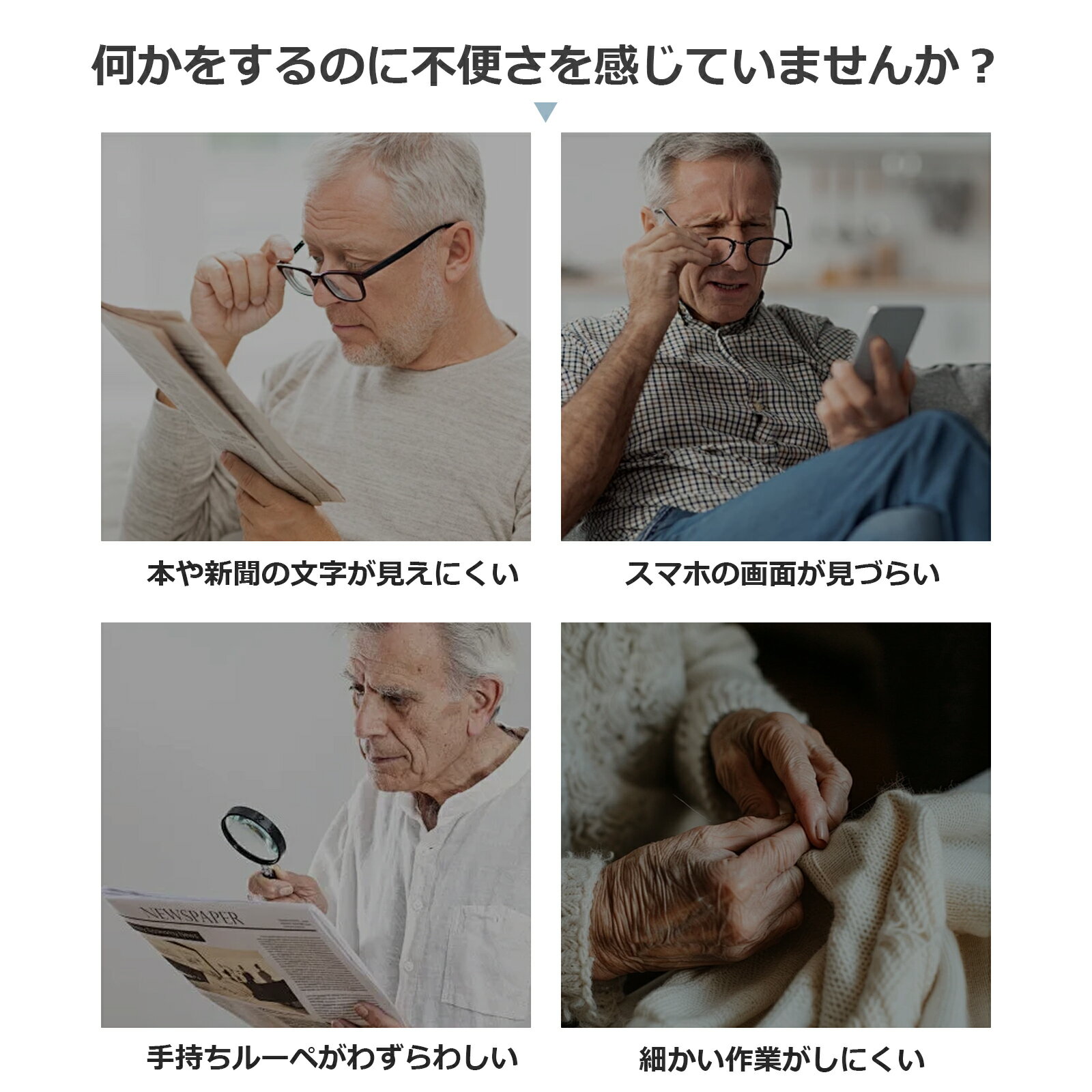 ■商品規格 【商品名】多機能ルーペ 【カラー】:ブラック 【材質】:ABS 【サイズ】:66*16*1.7cm/30*16.2.5cm 【重量】:608g 【倍率】:5/10倍 【バッテリー容量】:400mAh 【セット内容】:本体*1/USBケーブル*1/取り扱い説明書*1 ■商品紹介 読みたい、作りたい、細かい作業をもっと快適に! ◆5倍と10倍の2段階拡大で、あらゆるシーンに活躍! ・5倍拡大レンズ (直径約130mm): 新聞や書籍、スマートフォンの画面全体を広くくっきりと映し出します。広い視野でストレスなくお楽しみいただけます。 ・10倍拡大レンズ (直径約26mm): 地図の細かい地名、薬の説明書、電子基板の細かい部品など、より精密な確認が必要な場面で威力を発揮します。 ◆明るく照らすLEDライト搭載!3段階調節可能 周りが暗くても大丈夫!レンズ周囲に均一なLEDライトを搭載。ボタンひとつで「暗い→普通→明るい」の3段階からお好みの明るさを選べます。 薄暗い時間帯や影ができやすい作業も、手元をしっかり照らしてくれるから目が疲れにくい! ◆充電式でコードレス!便利なUSB充電 面倒な電池交換は不要です。付属のUSBケーブルで簡単に充電可能。 満充電後は、コードの煩わしさなくお使いいただけます。ご自宅はもちろん、外出先でも便利です。 ◆3WAYで選べる使い方!作業に合わせて自由自在 【首かけ式】首からぶら下げて使用。両手が完全に自由になるので、編み物や模型製作、修理作業などに最適です。 【卓上式】安定性抜群のスタンドタイプ。角度も自由に調節できるので、机の上で読書や作業を長時間される方にぴったりです。 【手持ち式】付属のハンドル(取り付け可能)を使えば、従来のルーペのように手に持ってお使いいただけます。 〜 こんな方にオススメです 〜 ・ 老眼で細かい文字が読みづらい方 ・読書や新聞が趣味の方 ・スマホ・タブレットをよく使う方 ・手芸・編み物・模型製作・修理が好きな方 ・ジャンルを問わず、細かい作業をされる方 ■注意事項 ■お客様がご利用のモニターの設定及び特性により、実際の商品とは色味が異なる場合がございます。 ■弊社の商品は一年の保証期間がございます、ご使用中万が一何か不具合と不明な点がございましたら、遠慮なく弊社にご連絡ください。 ■関連キーワード ルーペ 拡大鏡 LEDルーペ スマートルーペ 充電式 ルーペ USBルーペ 明るさ調整 3段調光 首かけ ルーペ 卓上 ルーペ 三脚 ルーペ ハンズフリー 3WAY ルーペ 手持ち ルーペ 老眼 高齢者 シニア 読書 裁縫 手芸 編み物 精密作業 検査 模型 コイン 切手 メイク 両手が自由 角度調整 軽量 便利 プレゼント 父の日 母の日 敬老の日