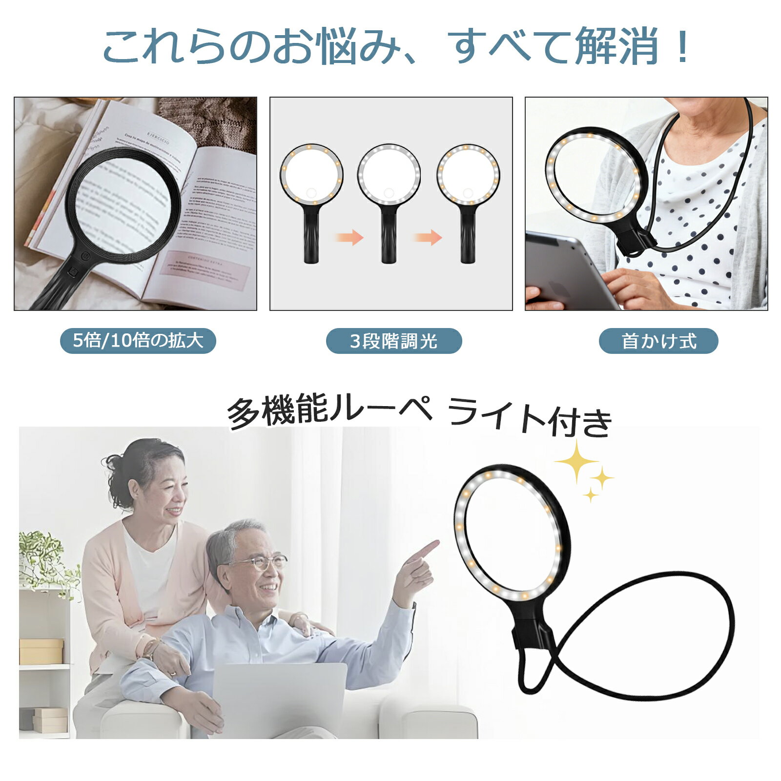 【当日発送】ルーペ 拡大鏡 首掛け拡大鏡 フレネルレンズ スタンドルーペ 手持ちルーペ 虫眼鏡 装着 拡大率5倍 ライト付き 首かけルーペ スクリーン 拡大レンズ 卓上式 10倍 USB充電式 首掛け 手持ち スマホ 読書 新聞 本 手芸 ギフト