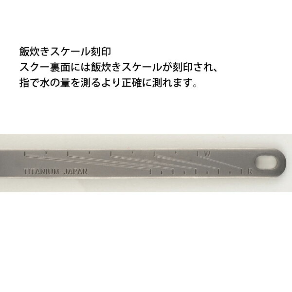 スノーピーク スクー [ SCT-125 ]snow peak Scoo通常のスポークよりもフォーク部分を長くすることで、パスタやラーメン等のヌードル類が無理なくすくえるようになりました。もちろんライス類もいままでのスポーク同様にすくえます。この一本さえあれば、世界のどこに行っても快適に食事をすることができます。グリップ裏面には飯炊きスケールが刻印されています。指で水を測るよりも正確に測ることができます。■ 仕様●サイズ:33×163mm●材質:チタニウム●重量:16gJAN:4960589116256プレゼント ギフト