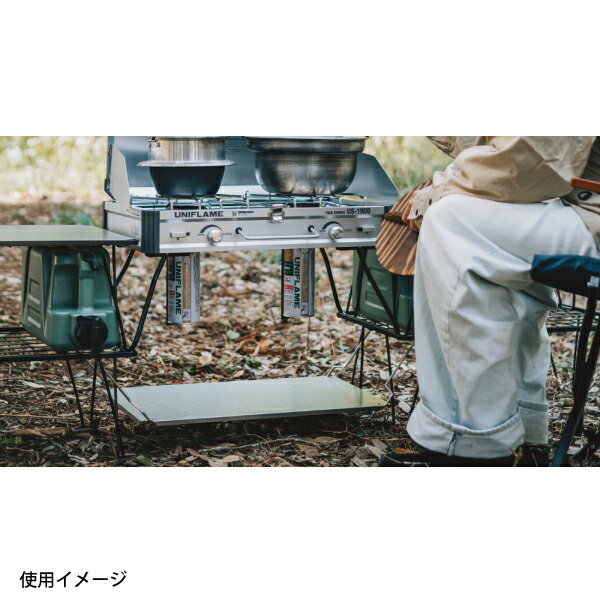 ユニフレーム フィールドラック システムラック[611555]▼フィールドラックのデッドスペースを解消脚金具にはめ込む簡単取付。地面とラックの1段目の間を棚にして有効活用。2台のフィールドラックの間でも取付可能。●脚金具にはめ込むだけの簡単取付。天面は特殊エンボス加工でキズが目立ちません。 ●地面から天面までは約5cm。システムラックの有効高さは約16cm。 ■仕様【収納時サイズ】 約54×31.5×1(高さ)cm【材質】ステンレス鋼【重量】約1.2kg 【分散耐荷重】約5kg[ ユニフレーム UNIFLAME UNIFLAME ゆにふれーむ アウトドア キャンプ バーベキュー BBQ テーブル 机 つくえ アウトドアテーブル キャンプテーブル コンパクトテーブル ミニテーブル 小型 小さい 小さめ ラック 棚 追加 追加ラック 追加棚 オプション アクセサリー フィールドラック 611616 ]2025/06/17