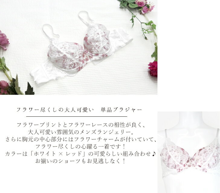 訳あり メンズブラ フラワー尽くし 大人可愛い メンズランジェリー A85-A105 メンズ体型用 パッド入り 単品 ブラジャー (JM-1250-B-O)[メール便不可]【 男ブラ 男性用ブラ 男性用ブラ 大きいサイズ 男性用ブラジャー 下着 ブラ 男性用下着 かわいい】
