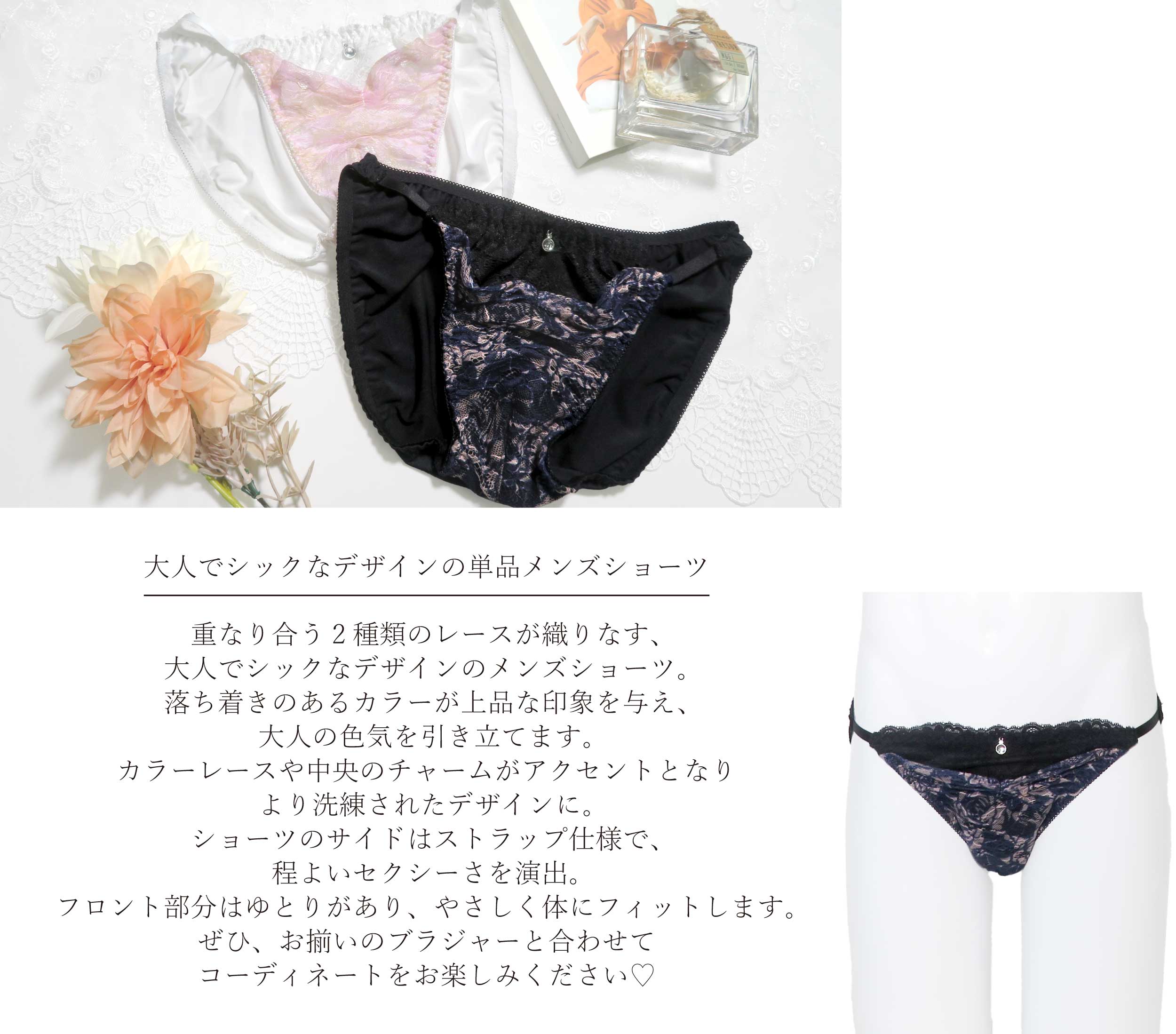 メンズ ショーツ M-4L 男性用 パンツ ホワイト ブラック (JM-1295-S)[★メール便OK]【 M L LL 3L 4L ショーツパンティ 下着 ジェンダーレス トランスジェンダー 乙女男子 かわいい】