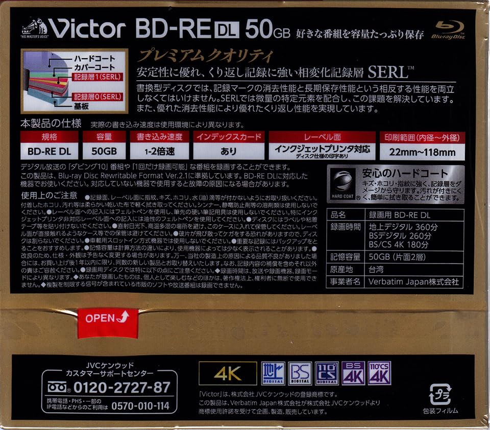 ブラック/6枚(5+1枚)/-・Size:6枚(5+1枚)・録画用 BD-RE DL・BD-RE DLくり返し録画用・データ&デジタルハイビジョン録画対応・50GB片面2層地上デジタル:360分 BS/CSデジタル:260分・1〜2倍速メーカー:Victorビクター ・BD-RE DLくり返し録画用 ・デジタルハイビジョン録画対応 ・50GB片面2層地上デジタル:360分 BS/CSデジタル:260分 ・1〜2倍速 ・ワイドホワイトレーベルインクジェットプリンタ対応