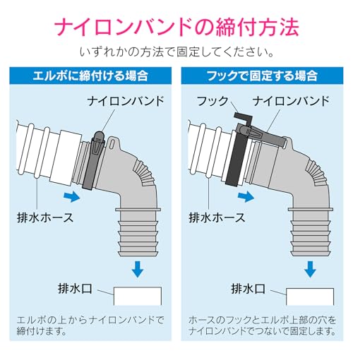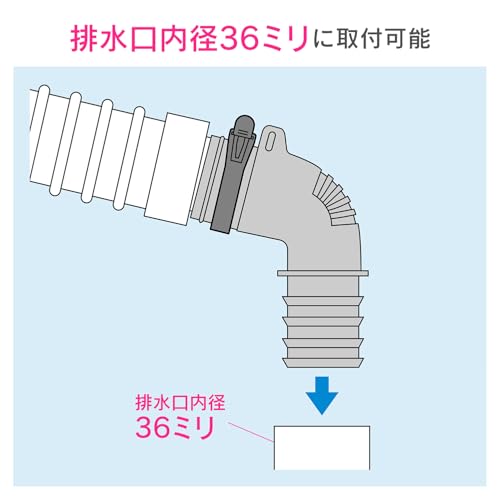 -/36mm/GA-LF026・取付可能排水口内径:36mm・材質:エラストマー、ナイロン・付属品:ナイロンバンド洗濯機パンに排水ホースを差込むのに必須のパーツ 用途 洗濯機パンと排水ホースの接続アダプター 特徴 ・洗濯機パンに排水ホースを差込むためのエルボ ・エルボに締付ける場合はエルボの上からナイロンバンドで締付け、フックで固定する場合はホースのフックとエルボ上部の穴をナイロンバンドでつなぐことによって固定できる 注意事項 購入前にはサイズを必ず確認してください。