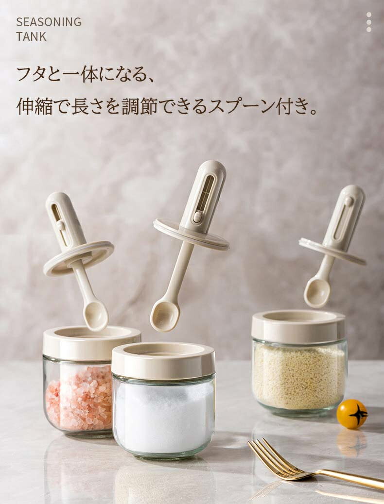 【10%OFFクーポン】調味料入れ スプーン付き 2/3/4個セット 塩入れ 砂糖入れ スパイスボトル コーヒー 砂糖ボトル 耐熱ガラス 調味料ポット 使いやすい 収納 保存 湿気防止 調味料容器 密閉ポット 小さじ長さ調節可能 スパイス入れ 調味料缶 粉末 キッチン用品