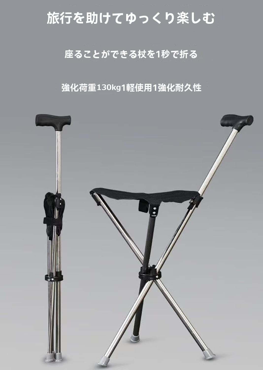 【6%OFFクーポン配布中!】折りたたみ式杖付き椅子 アルミ製 登山杖 歩行補助器 シート付き 休憩可能 荷重130kg 三脚設計 軽量で携帯性があり 収納が便利 折り畳み杖 折り畳み式ステッキ 杖椅子 座れる杖 座れるステッキ 3本脚 脚遠足/釣り/観戦/高齢者/障害者に適している