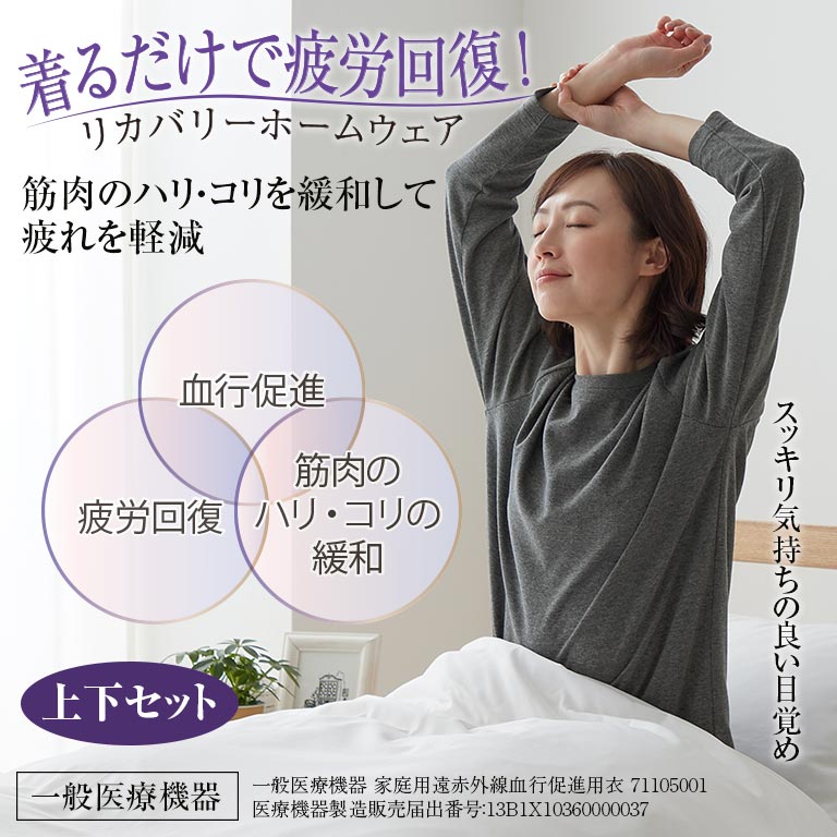<着る疲労回復>リカバリーホームウェア 上下セット 部屋着 パジャマ くつろぎ ホームウェア メンズ レディース 一般医療機器 グレー ブラック M L LL 血行促進 疲労 軽減 ハリ コリ 就寝 リラックス ストレッチ ウエストゴム リカバリーウェア リカバリーケア