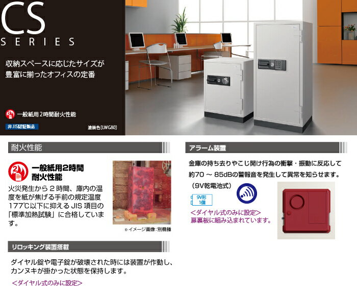 ※返品についてメーカー希望小売価格はメーカーカタログに基づいて掲載しています エーコー EIKO オフィス向け 耐火金庫 ダイアル式 CS-52A 商品説明 代引き不可*搬入設置必須 品番 CS-52A 種類 耐火金庫 ロックタイプ ダイヤル錠+シリンダー錠 外寸 幅1042 × 奥行702 × 高さ1575(mm) 内寸 幅886 × 奥行440 × 高さ1350(mm) 有効間口 幅872 × 奥行425 × 高さ1166(mm) 内容量 526L 重量 510kg 性能 JIS 一般紙用2時間耐火性能試験合格 装備 取扱説明書 棚板3枚 鍵付き引出し2個(幅386mm×奥行き280mm×高さ120mm)鍵2本(引出し用別途2本)単2形乾電池2本 備考 リロッキング装置搭載アラーム装置付き ■設置・配送について 配送業者 メーカーより直送(専門業者による設置) 商品引渡し方法 搬入設置 配送料金について 別途見積(ご住所、配送場所の状況によって変動します) 階段作業の場合は別途費用が発生します。 費用の算出に下見が必要となる場合もございますので、その際は、事前にご連絡をさせていただきます。(別途費用が発生します。) 【沖縄・離島】は、追加送料が発生する場合がございます。 出荷までの納期めやす 1週間〜10日程度にて出荷 *原則日曜日・祝日の配送・時間指定はしておりません。 その他・注意事項 ※、メーカーより直送手配となるため代引きは不可とさせて頂きます。 何卒ご了承ください。 【非対応条件】 1.設置作業後の製品説明(解錠説明など)は行えません。 2.特殊作業(固定・組み立て施工など伴う作業)は行えません。 3.一部地域に関して搬入設置配送対応が出来ない地域がございます。 上記に該当する場合は従来専属の据付業者による設置作業となりますので、作業費用に関しましては、都度見積もりさせていただきます。 【検索用ワード】 大型金庫 鍵付き トップジャパン 貴重品 セーフティボックス 金庫 セキュリティボックス ボックス