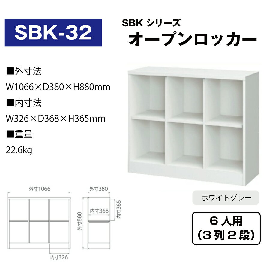 豊國工業 オープンロッカー SBK-32 ホワイトグレー 重量22.6kg | SBKシリーズ 6人用 3列2段 H880タイプ スクールロッカー ランドセル スクールバッグ 教室 扉無し 事務用品 トップジャパン スチールロッカー 業務用 荷物入れ 会社 収納 ロッカー |