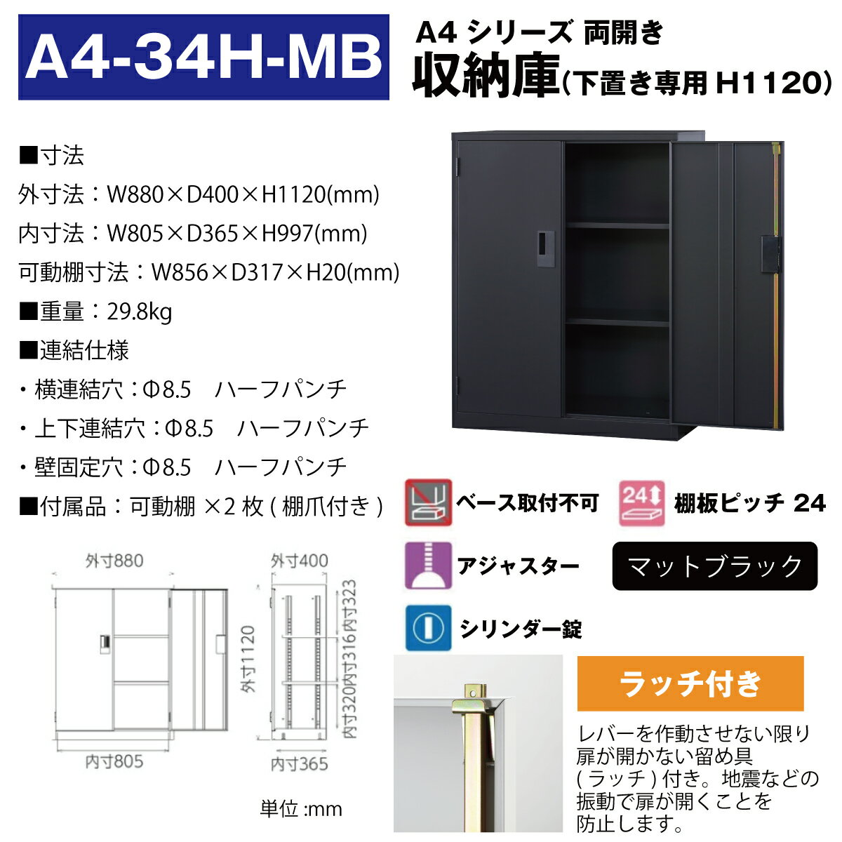 豊國工業 収納庫 両開きタイプ A4-34H-MB マットブラック 29.8kg | 両開き式 A4シリーズ 下置き専用 H1120タイプ コスパ良し ロングセラー スタンダード 豊国工業 共用 事務用品 トップジャパン スチール収納庫 業務用 職場 会社 収納 |