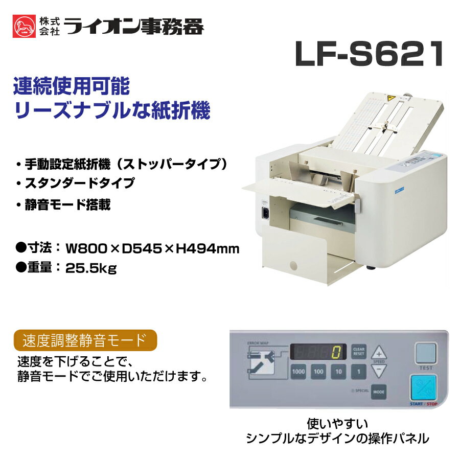 ライオン事務機 自動紙折機 LF-S621 (84652) クロス折りパーツ無し | LF-S620後継 LION 紙折り機 業務用 DM 卓上 a3 a4 a5 b4 2つ折り 片袖折り 二つ折り 三つ折り 折り機 外三つ折り 四つ折り コンパクト 紙折機 4つ折り 事務用品 自動紙折り機 小型 事務 安い 厚紙 静音 |