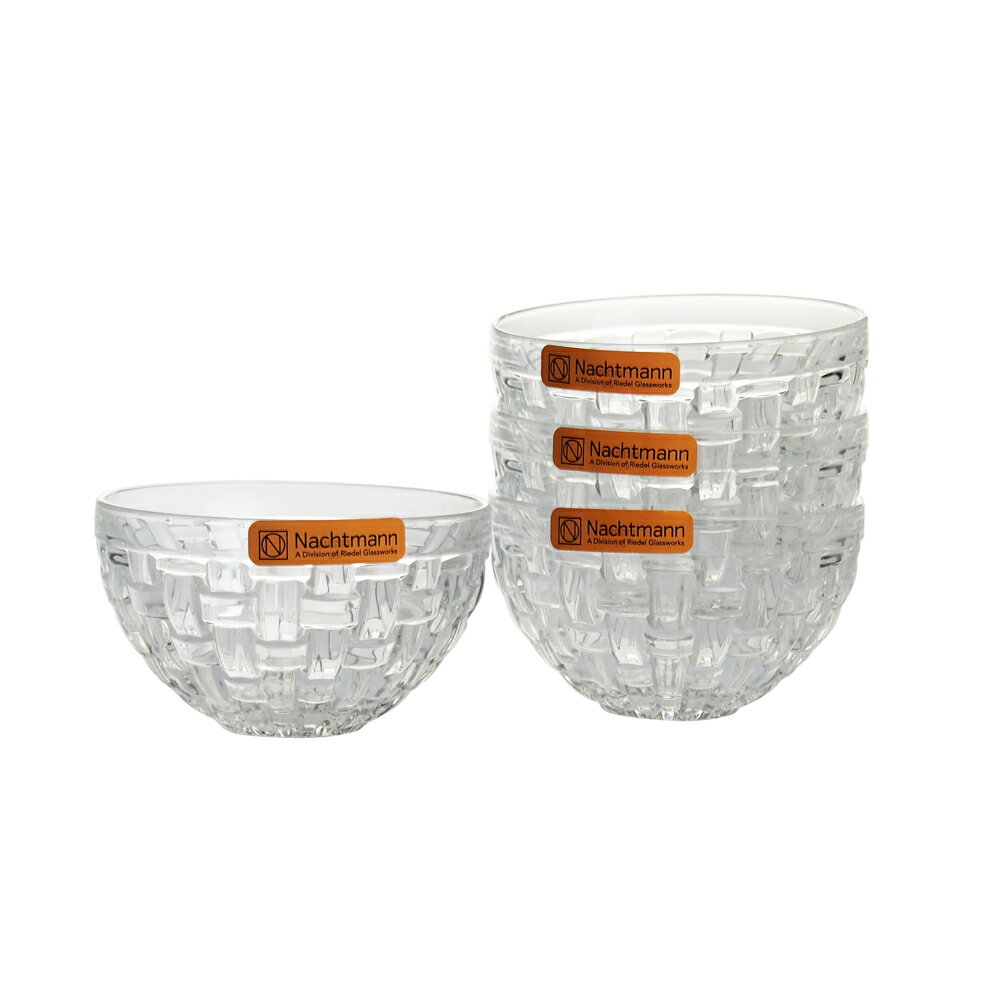 生産国 ドイツ(Made in Germany) セット内容 ディップボウル×4 サイズ 口直径9.8cm / 高さ5.5cm 素材 クリスタルガラス(Lead Glass) ブランドボックス 付属しております 商品につきまして 商品の製法上、5mm〜1cmの個体差が生じる場合がございます。 光にかざすと見える程度の傷、気泡、凹み、歪み、 重量個体差が生じる場合がございますが、クリスタル製品の製法上、 不良商品ではございません。 返品・交換の対象外となります。 メーカー検品を通過した商品ですので、予めご了承くださいませ。 ドイツ製の高品質 ナハトマン(Nachtmann)は1834年ドイツのバイエルン地方で 誕生したグラスブランド。 現在はオーストリアのワイングラスメーカー、 リーデルの傘下に入り、 高い技術と、伝統の職人技、 最先端の製法で多様なグラスウェア製品を生み出しています。 ボサノバシリーズは、幸福感が溢れる軽やかなダンス—ボサノバ—からインスピレーションを得たシリーズ。 二人の心が通じ合う瞬間を、2本の紐が美しく調和するパターンで表現されています。 *** クリスタルガラスは、珪砂(SiO2)、カリウム、ソーダ灰から成るガラスの主成分に、 酸化鉛(PbO)を添加して形成される鉛ガラスの一種。 ガラスの製造時に酸化鉛等を添加することでガラスの溶解温度が低く抑えられ、 成形もソーダガラスに比べて容易になること、 また透明度と屈折率が高まり水晶(クリスタル)のように輝く透明なガラスになることから、 通称として“クリスタル”と呼ばれます。(参考:Wikipedia) クリスタルの輝きと重量感は高級感を放ち、食卓を豪奢に演出します。 国際標準規格を持つクリスタル 最先端のドイツ工場では、2001年にクリスタル業界では第一号となる 【国際標準規格DIN ISO14001】 の国際規格を取得しました。 高級感溢れる輝きと重量感で、盛りつけた料理を 一流レストランの“フルコースの一枠”のように引き立たせる逸品です。 光にかざすと見える程度の傷、気泡、凹み、歪み、重量個体差が生じる場合がございますが、 クリスタル製品の製法上、不良商品ではございません。 商品は全てメーカーの検品を通過した商品でございますので、 上記内容は返品・交換の対象外とさせていただきます。 予めご了承の上、お買い物くださいませ。Nachtmann | ボサノバ ドイツ製の高品質 ボサノバシリーズは、幸福感が溢れる軽やかなダンス—ボサノバ—からインスピレーションを得たシリーズ。 二人の心が通じ合う瞬間を、2本の紐が美しく調和するパターンで表現されています。  小さなボウルはサービングボウルや、小鉢として、アイスクリームなどのスイーツにもおすすめです。