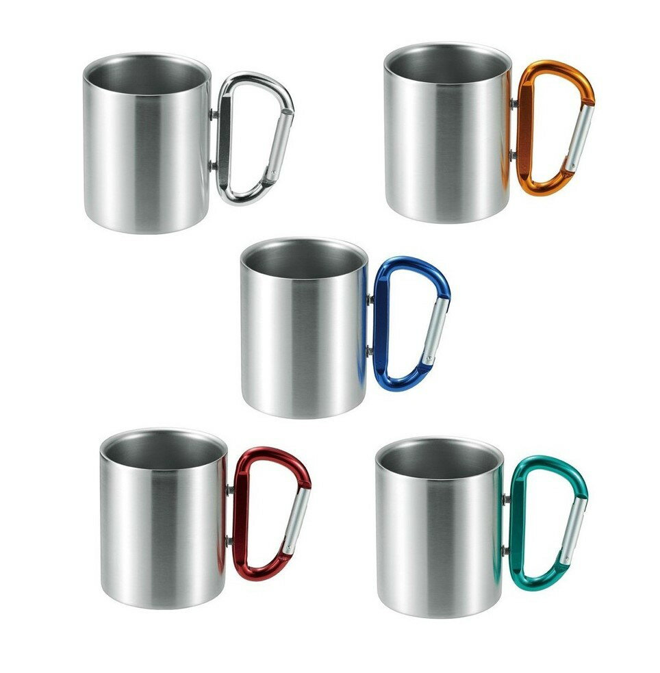 名入れ カラビナマグカップ 二重構造 18-8ステンレス ハンドル部分選べる4色