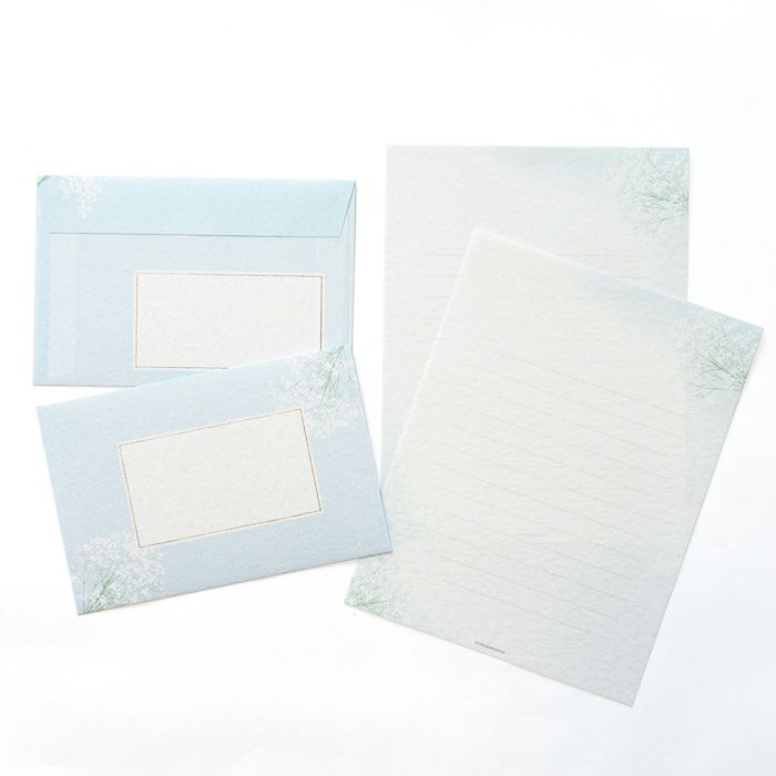 古川紙工 今日のお手紙 レターセット カスミソウ 青い花 キイロのおはな しろいことり手紙 はがき おしゃれ かわいい 便箋 封筒 セット