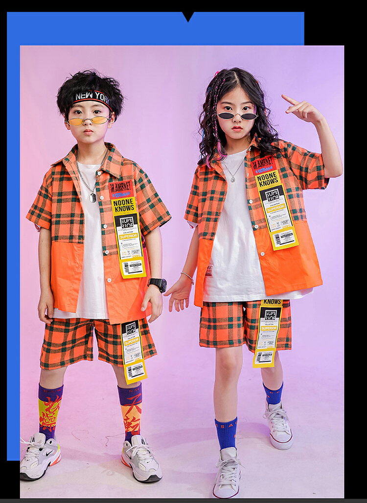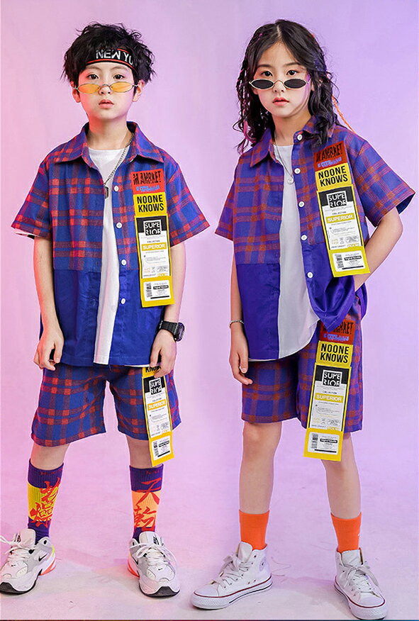 キッズ ダンス 衣装 ヒップホップ セットアップ チェック柄 ダンス衣装 ギンガムチェック かっこいい 男の子 女の子 キッズダンス 演出 舞台 トップス ダンス hiphop