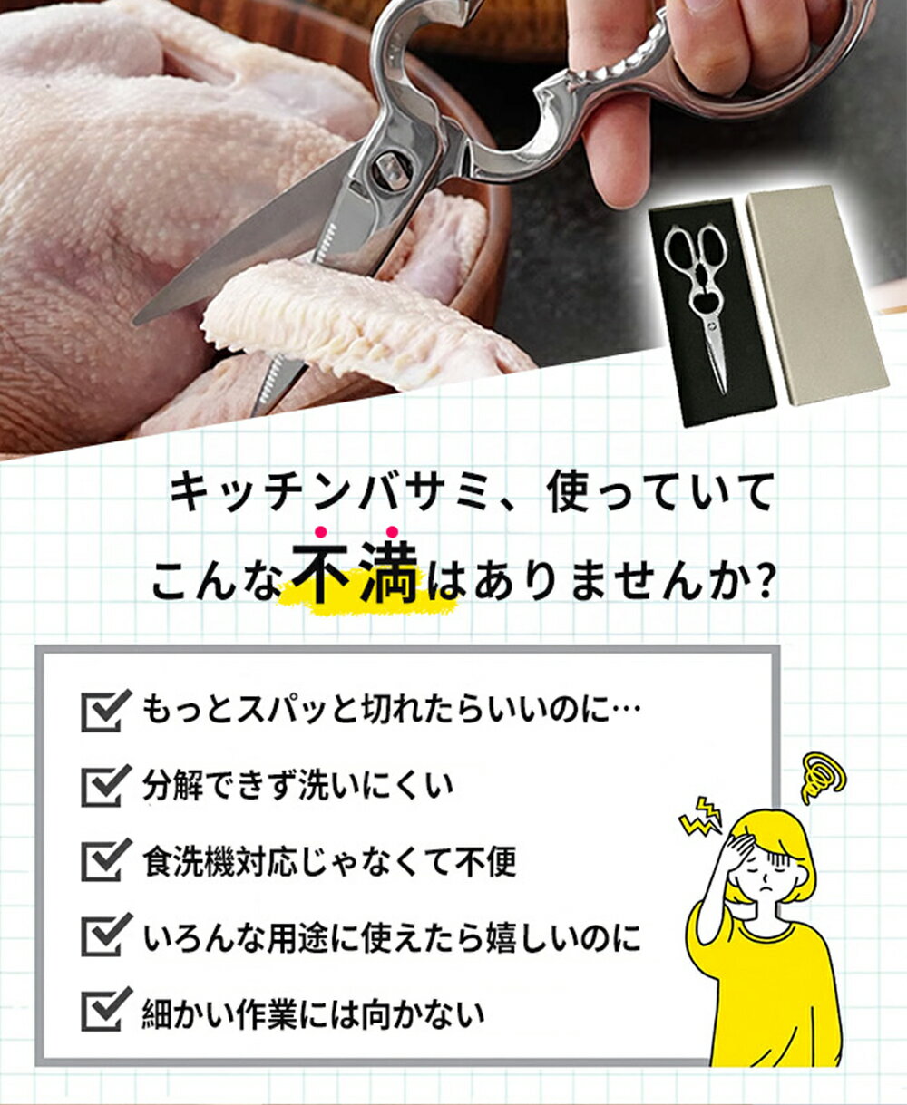 肉切りはさみ 肉 ハサミ 高級 ステンレス 料理バサミ キッチンハサミ キッチンバサミ 調理用ハサミ 調理バサミ 切れ味抜群 料理ハサミ 調理ハサミ よく切れるハサミ 分解 肉切りハサミ 手放せない理由がある 進化系キッチンバサミ 分解して洗えるオールステンレス 食洗機対応