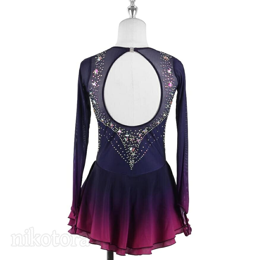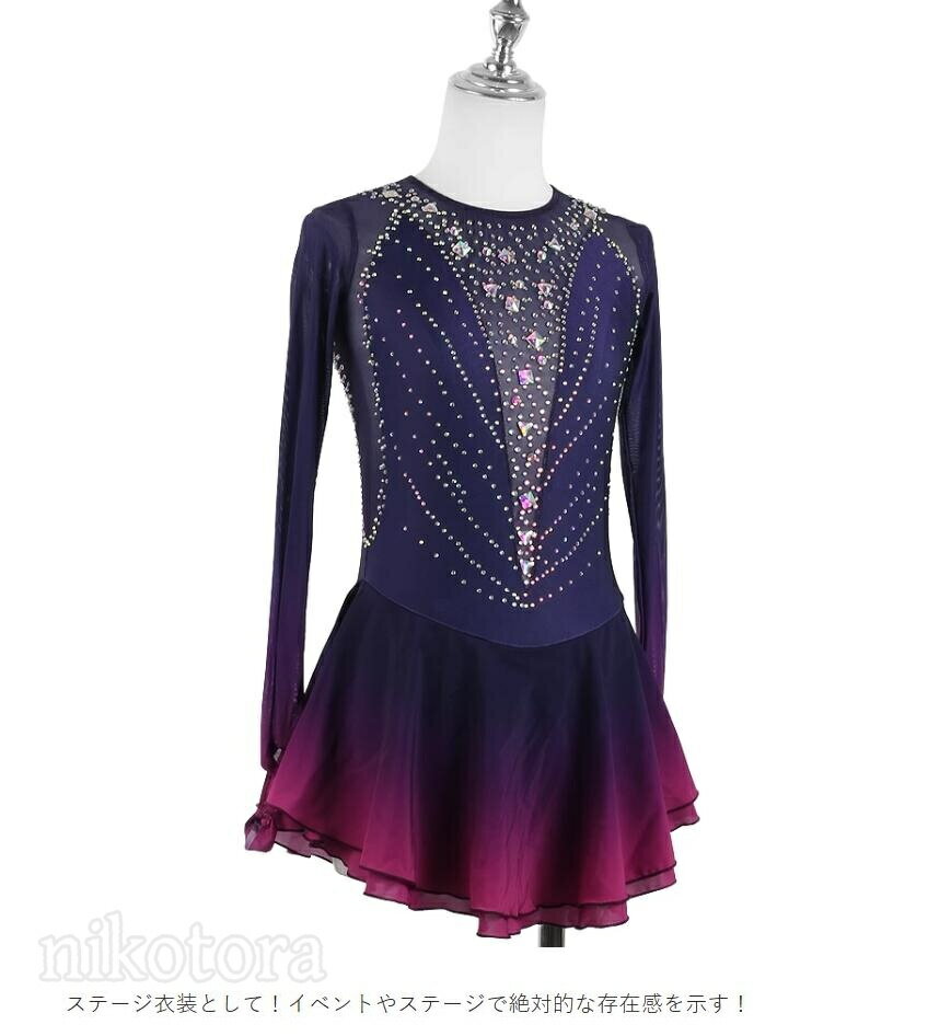 グラデーション フィギュアスケート 衣装 女子 大人 アイスダンス 衣装 専用レオタード スタンダード スケート衣装 コスチューム スケートウェア 長袖 上品 フィギュア スケート ドレス ダンス衣装 発表会 レッスン着 試験 練習 競技着 演出服 ステージ衣装 紺紫