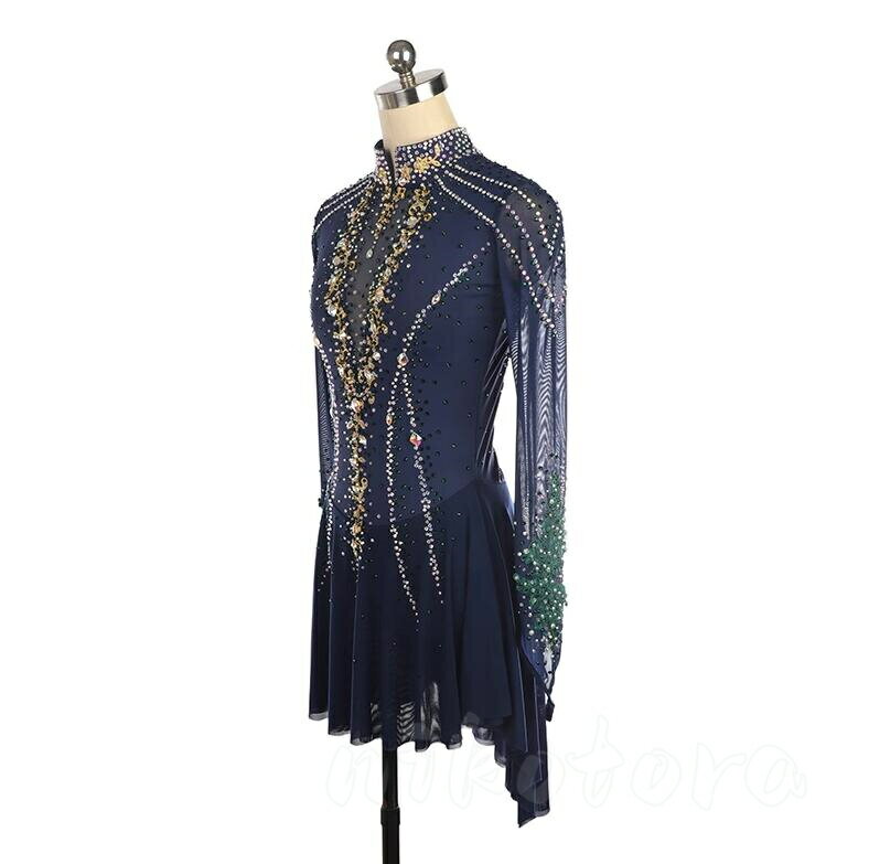 長袖 レオタード スカート ストレッチ キラキラ ラインストーン 子供 大人 フィギュアスケートドレス 専用レオタード レッスン着 フィギュアスケート衣装 競技着 ダンス衣装 スタンダード 舞台 発表会 スケート衣装 ダンスドレス 練習 美しい
