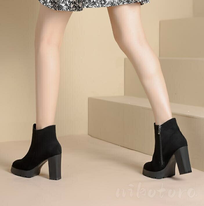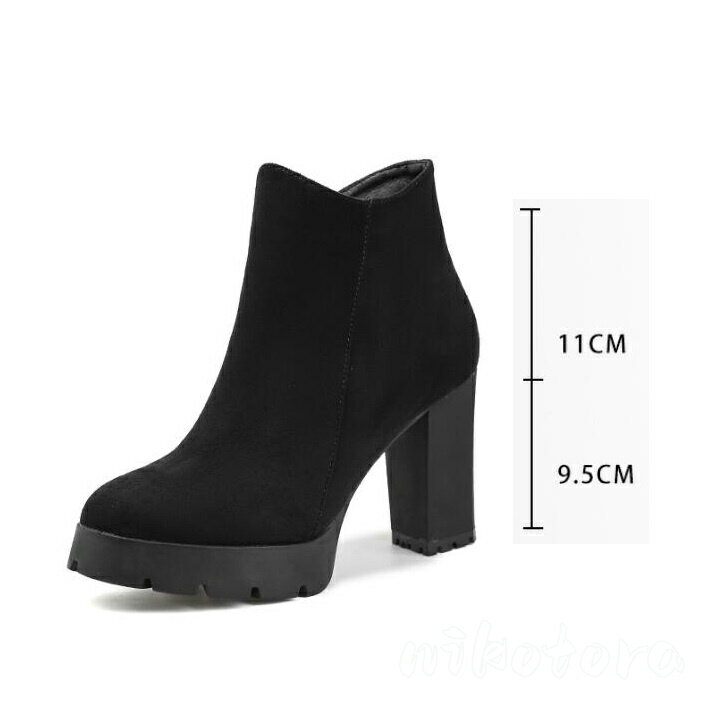 厚底ブーツ ショートブーツ レディース ブーティー アンクルブーツ サイドゴアブーツ ポインテッドトゥ スエード靴 ハイヒール チャンキーヒール 太めヒール 9.5センチ サイドファスナー 美脚 歩きやすい 疲れない 履きやすい 春秋冬