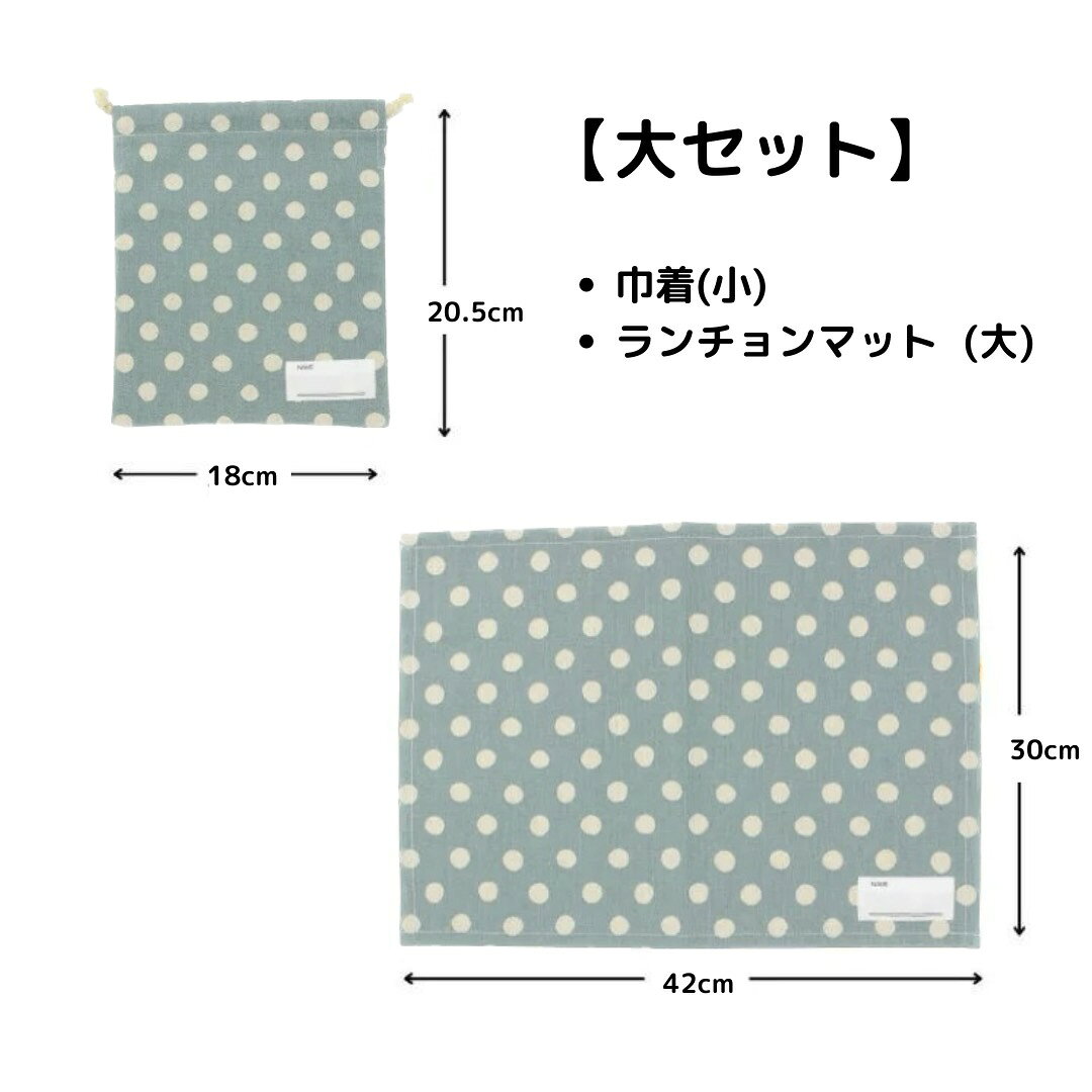 ギフト対応 SIZE サイズ タテ ヨコ 単品価格 ■ 単品のランチョンマット(大)を見る ≫≫≫ ■ 単品のランチョンマット(小)を見る ≫≫≫ ■ 単品の巾着を見る ≫≫≫ INFORMATION 【にんじゃがKIDSオリジナル】 1枚ずつ手づくりで作られた安心の日本製 大サイズ、小サイズのどちらか1枚を選べるランチョンマットと コップ入れにちょうどいいサイズ感の巾着(小)1枚のお得なセット商品です! 配送について ランチョンマット巾着セットのみご注文の場合ゆうパケット(送料無料)での発送となります 素材 カラー8・9・10・11(水玉各色)・12(ベージュスター):綿80% 麻20% その他:綿100% 注意点 ※天然素材を使用しているため、ネップ・ふしが見られることがありますが、素材の風合いとしてお楽しみください。 ■ブラックスターの縫い糸のカラーが白から黒に変更いたしました。 ■オリジナル商品ですので、柄の出方が写真とは異なる場合がございます。ご了承ください。 ■生地の特性により、お洗濯後シワになりやすい素材となります。干して頂く際には伸ばして干して頂く事をお勧め致します。↓ >>シワになりにくいランチョンマット巾着セットはこちらから<< 素材感や色合いの表現には差があります。 お使いのパソコンのモニター環境により色合いが異なる場合がありますので、ご了承の上ご注文お願い致します。 メーカー希望小売価格はメーカー商品タグに基づいて掲載しています。 ■ 通園・通学グッズをもっと見る ≫≫≫