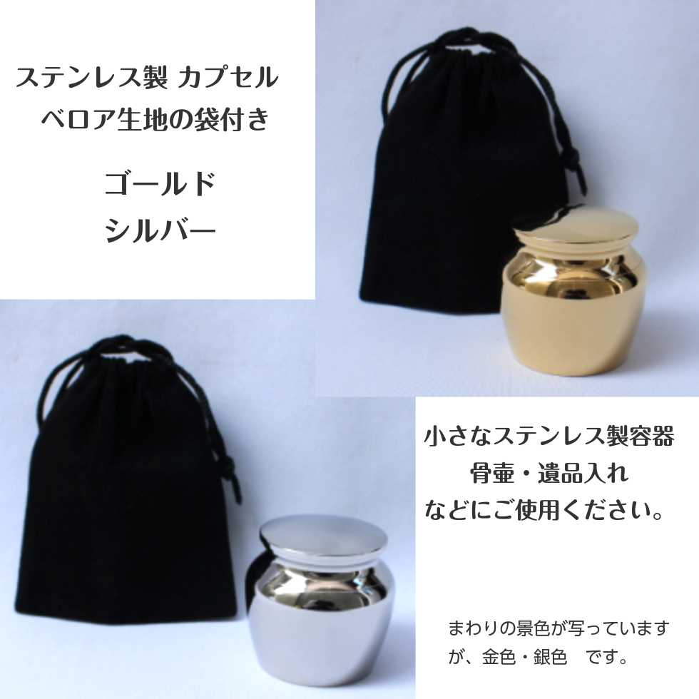 【50円OFFクーポン配布スーパーSALE】ステンレス製カプセル 外袋付き ゴールド シルバー 骨壷 遺品入れ