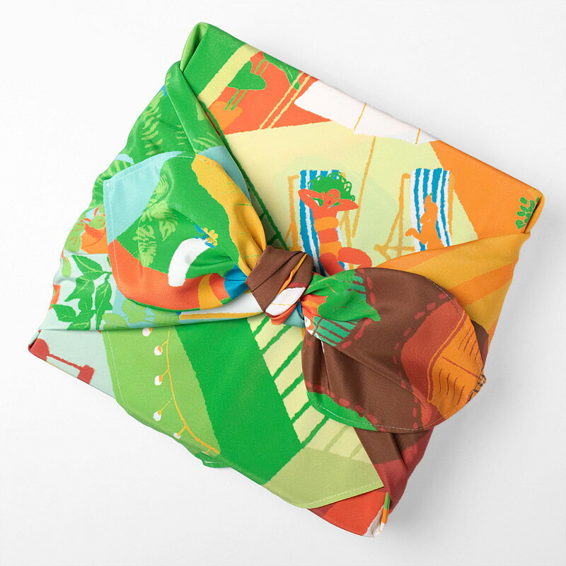 騙し絵のように入り組んだ色々な家と、そこで暮らす人や動物たちを描きました。 明るいトーンの限られた色で構成しているので派手すぎず、様々なシーンが楽しい絵柄です。 商品名 家でつつむ サイズ 96cm×96cm(乱) 重量 105g 素材 ポリエステル100% 加工 超撥水加工『dewelry®』(日本製) 【ご注意】 ・ サイズが多少異なる場合があります。 ・ 家庭用の洗濯機で他の衣類と一緒に洗濯しても問題ありません。ただし、柔軟剤の使用は撥水機能の妨げとなりますのでお避けください。 ・ 洗剤には吸水性がありますので洗剤を付けると撥水機能は一時停止します。湯又は水で洗剤をすすぎ落としますと撥水機能は元に戻ります。 ・ 漂白剤を使用すると撥水機能が劣化してしまうので使用しないでください。 ・ 風呂敷のみの商品です。 *贈答用に、ギフトボックスがおすすめです* クリーム 150円(税込) サックス 150円(税込)